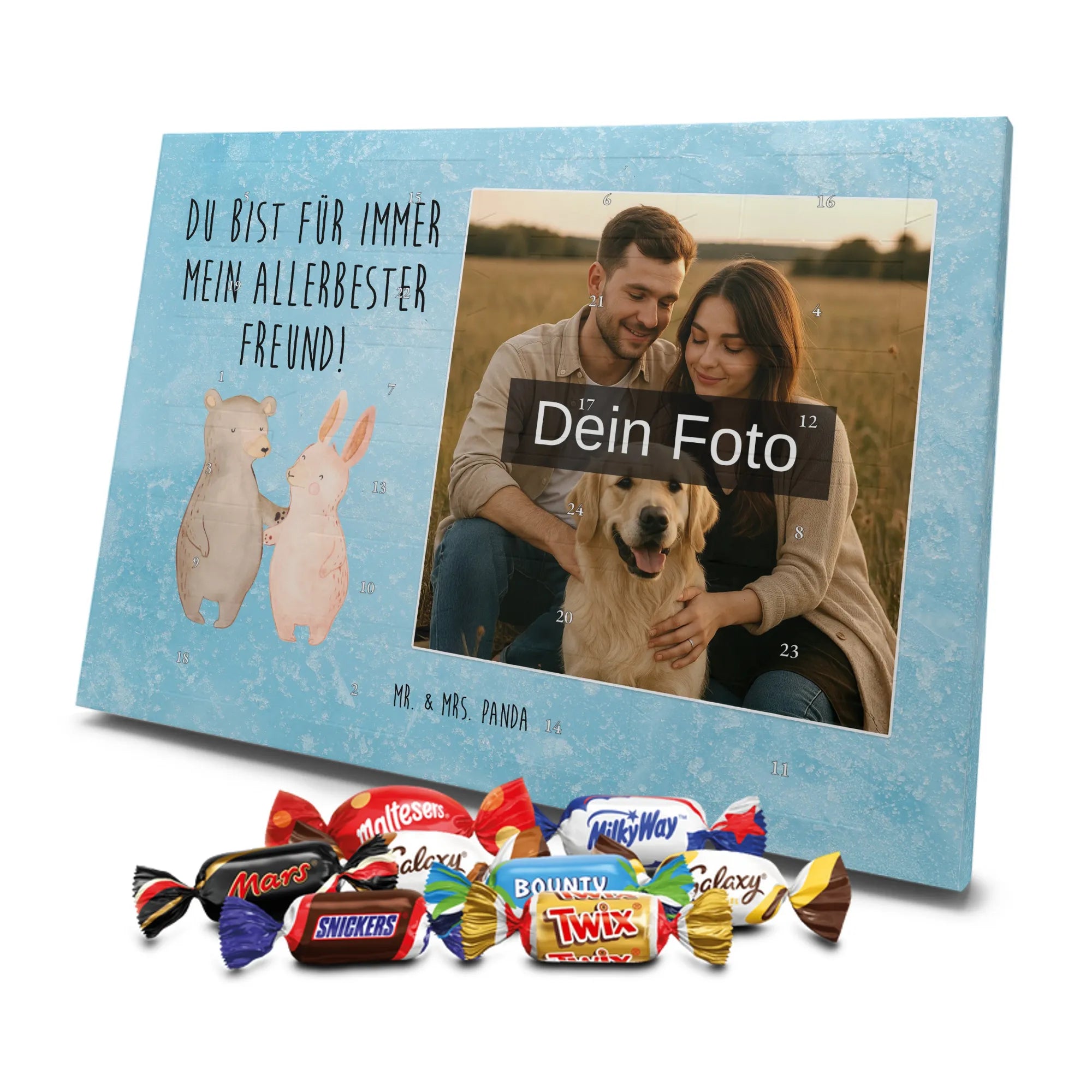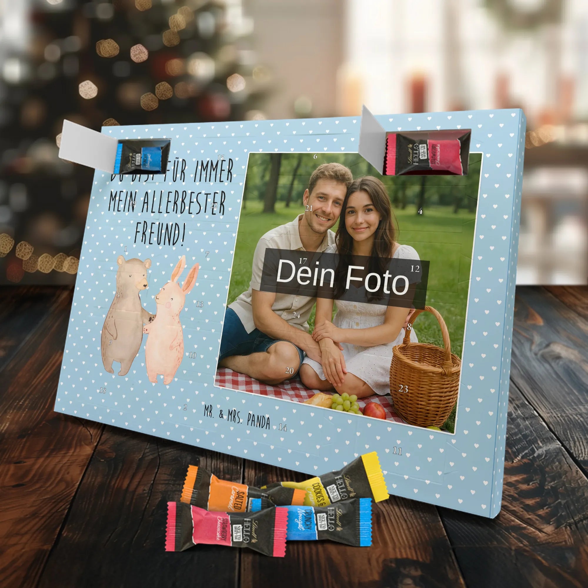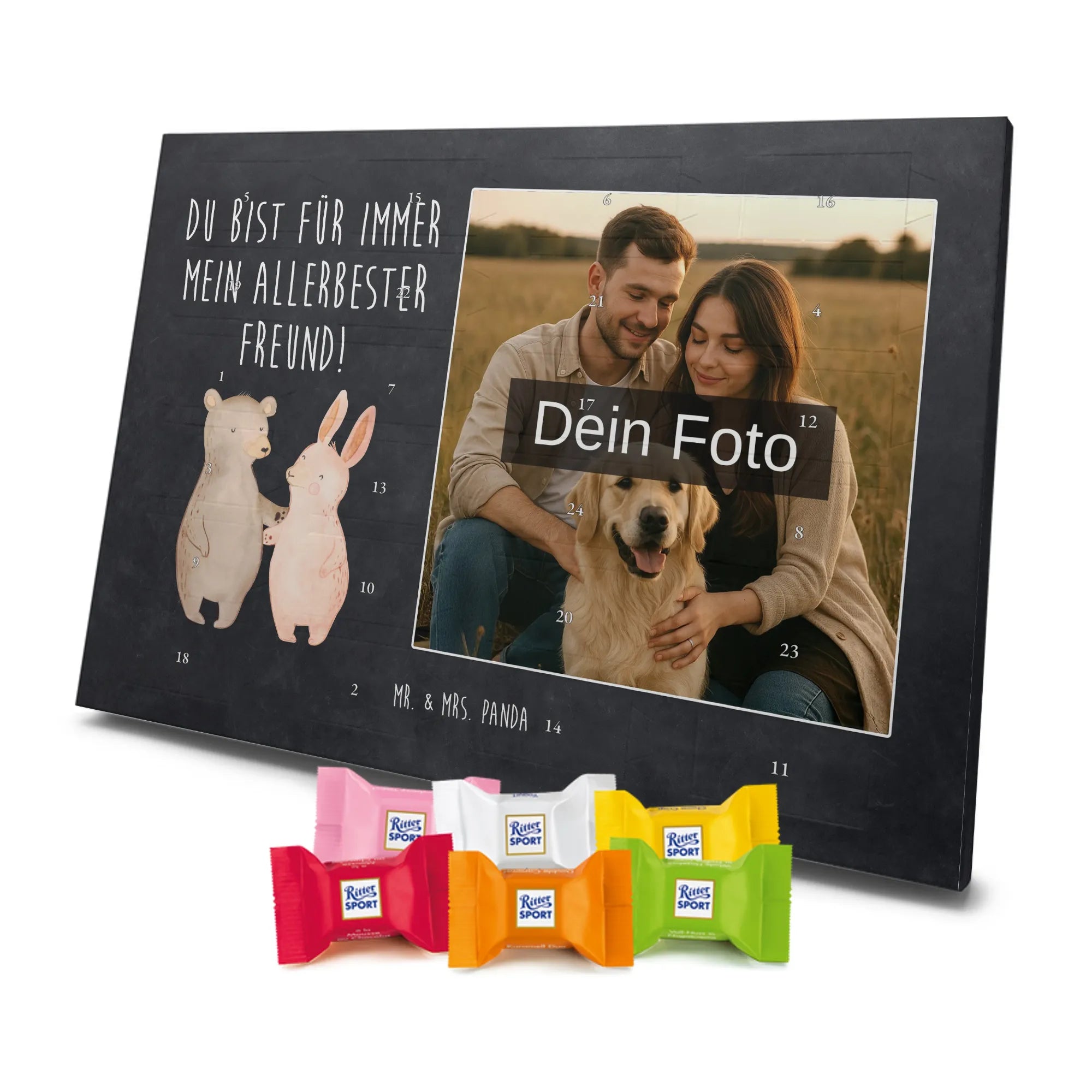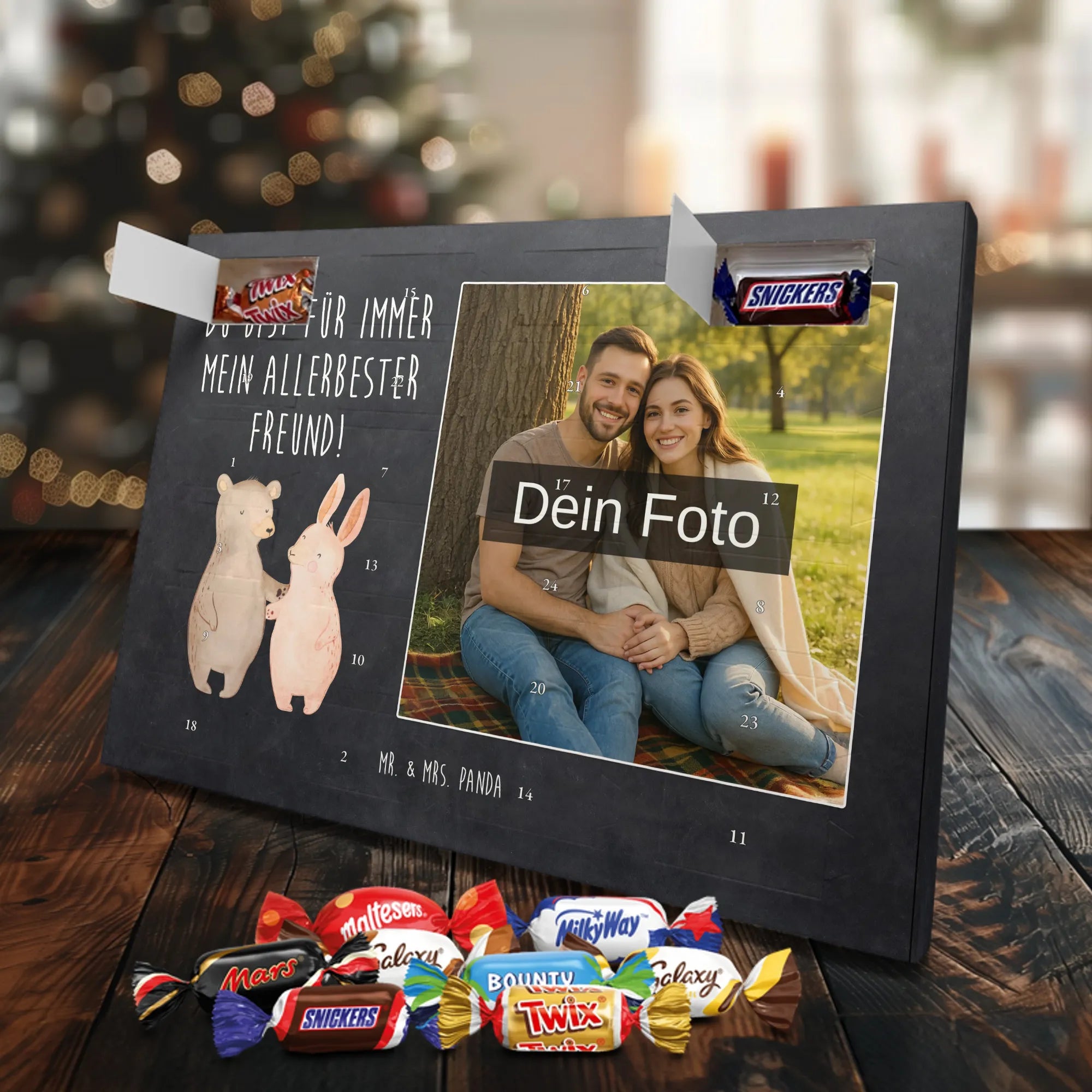Verschenke Vorfreude: Gestalte jetzt deinen personalisierten Schoko Foto Adventskalender und überrasche mit süßen, persönlichen Momenten von Mr. & Mrs. Panda.