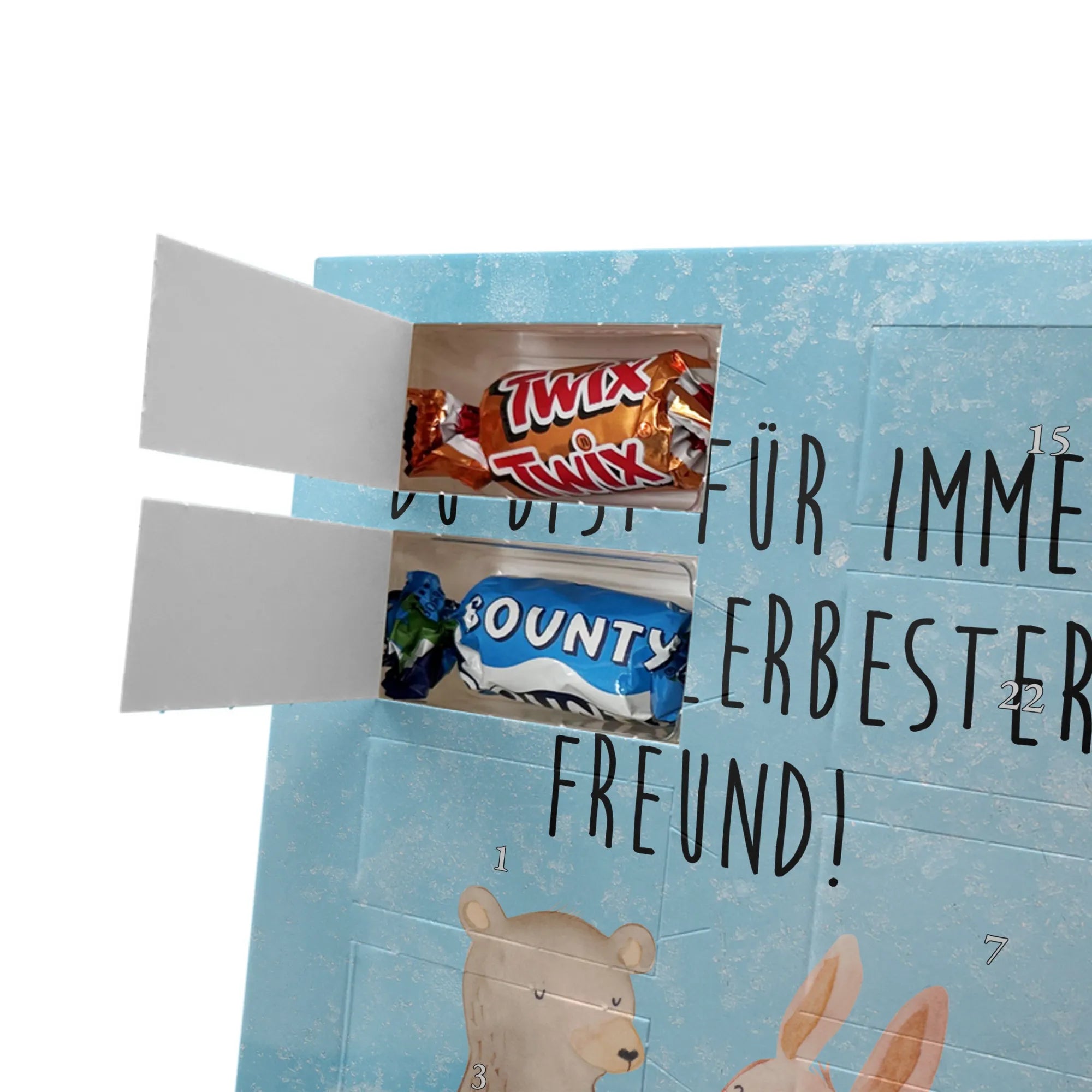Foto Adventskalender Bär und Hase Umarmen - Classic - Eisblau
