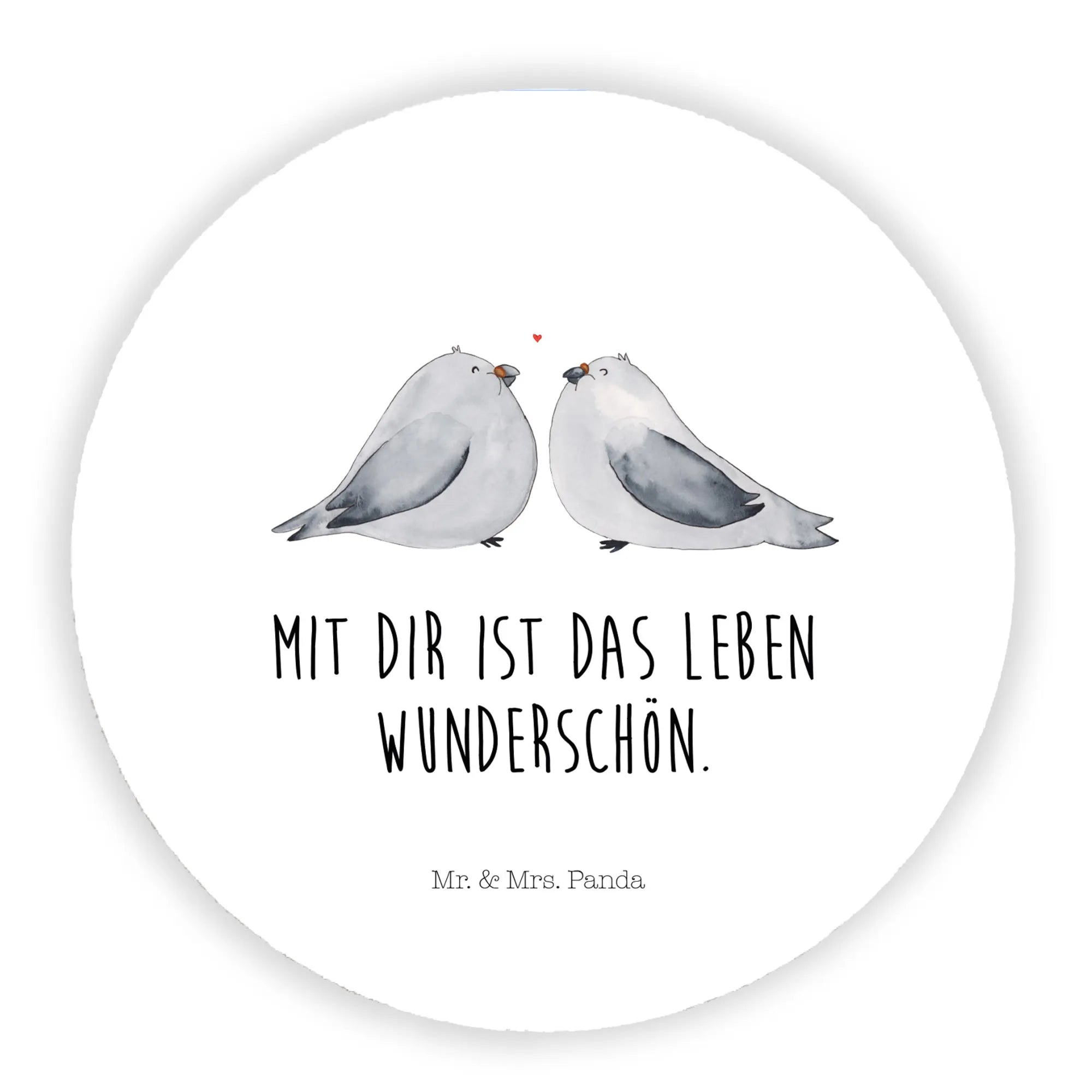 Der Rund Magnet Turteltauben Liebe von Mr. & Mrs. Panda ist das perfekte Geschenk für Verliebte und solche, die es werden wollen. Dieser liebevoll gestaltete Magnet ist mit einem romantischen Motiv von zwei Turteltäubchen bedruckt, die sich innig zuneigen und zwischen ihren Schnäbeln ein rotes Herz schwebt.
