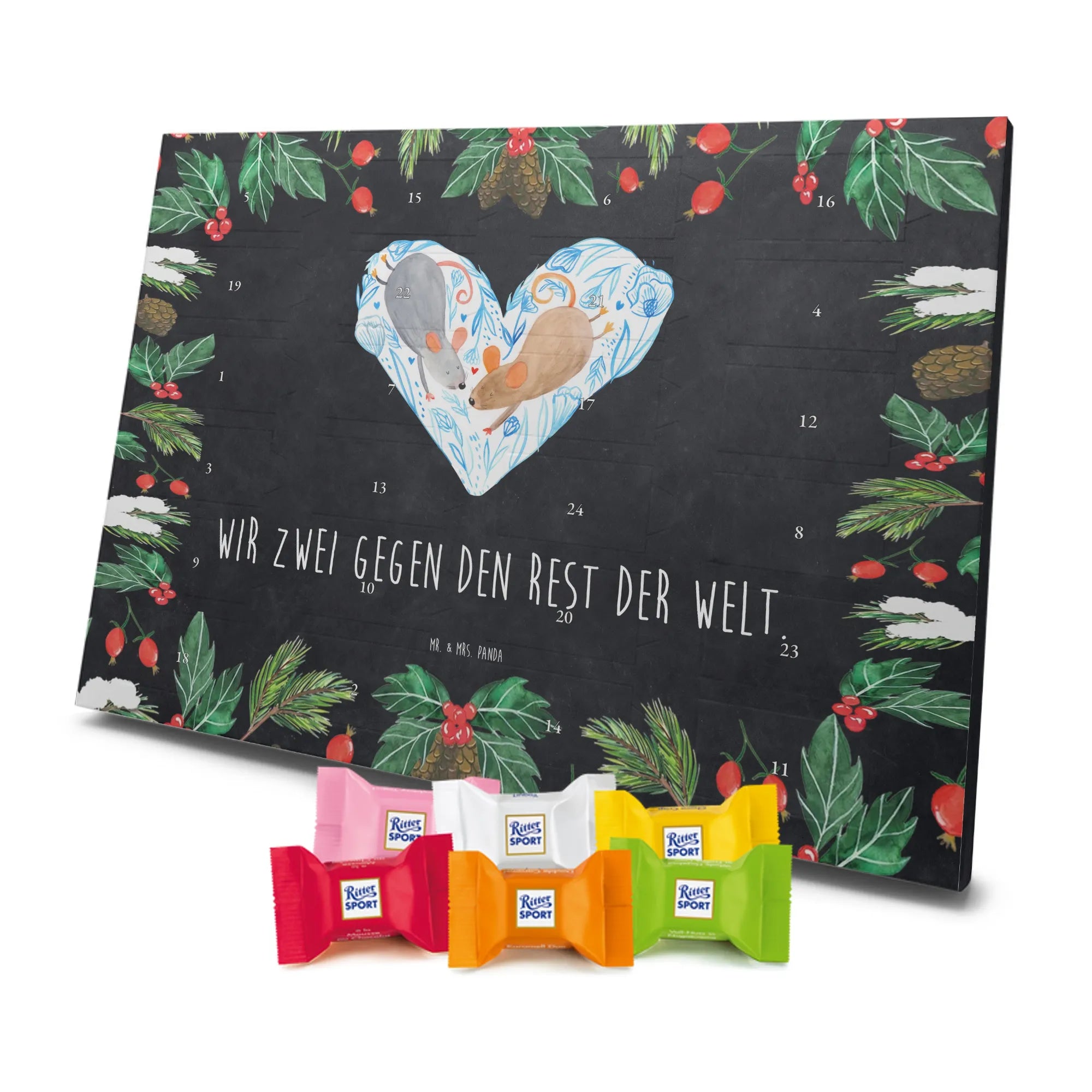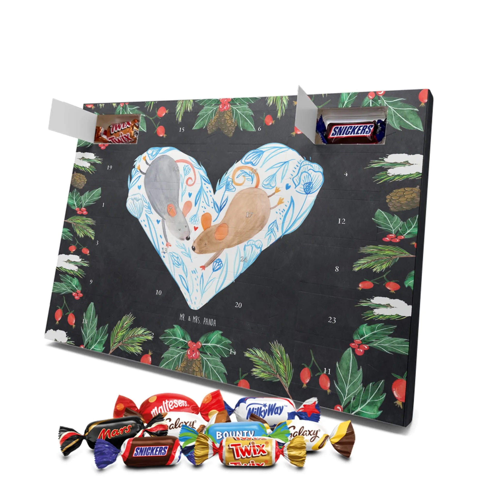 Schokoladen-Weihnachtskalender Mäuse Herz - Classic - mit Spruch - Eisblau