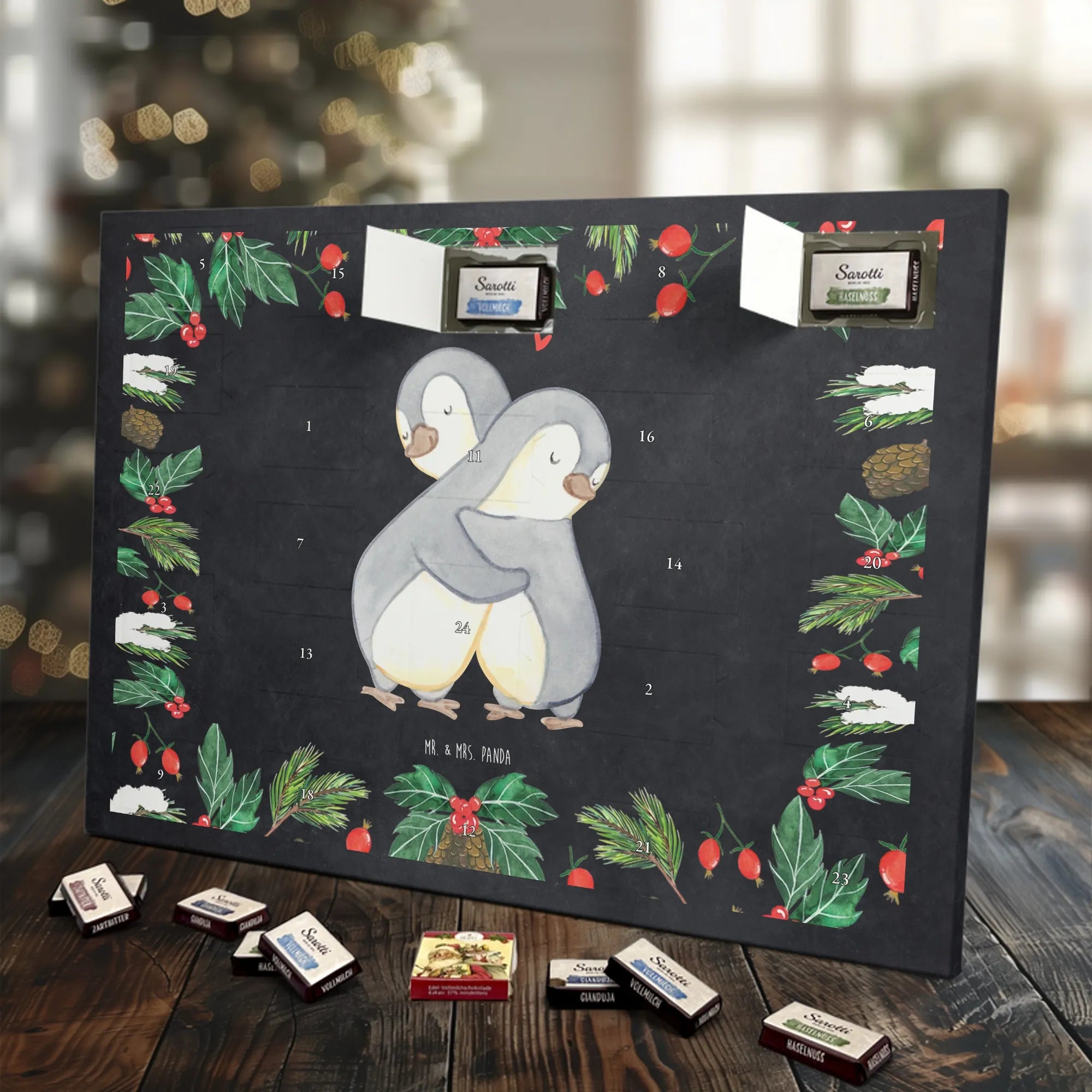 🐼 Schoko Adventskalender mit Mr. & Mrs. Panda Motiven, brillante Druckqualität, nicht personalisierbar.