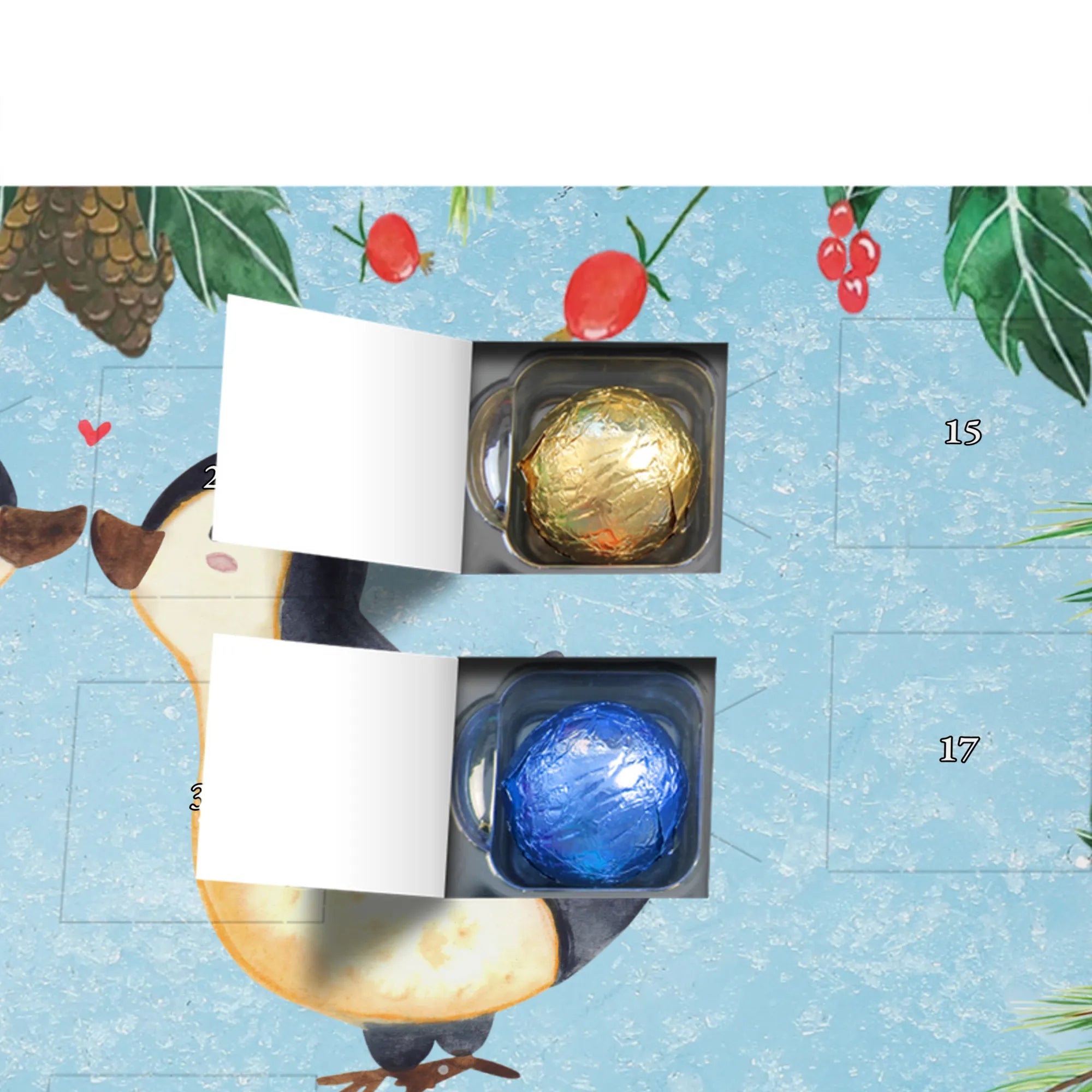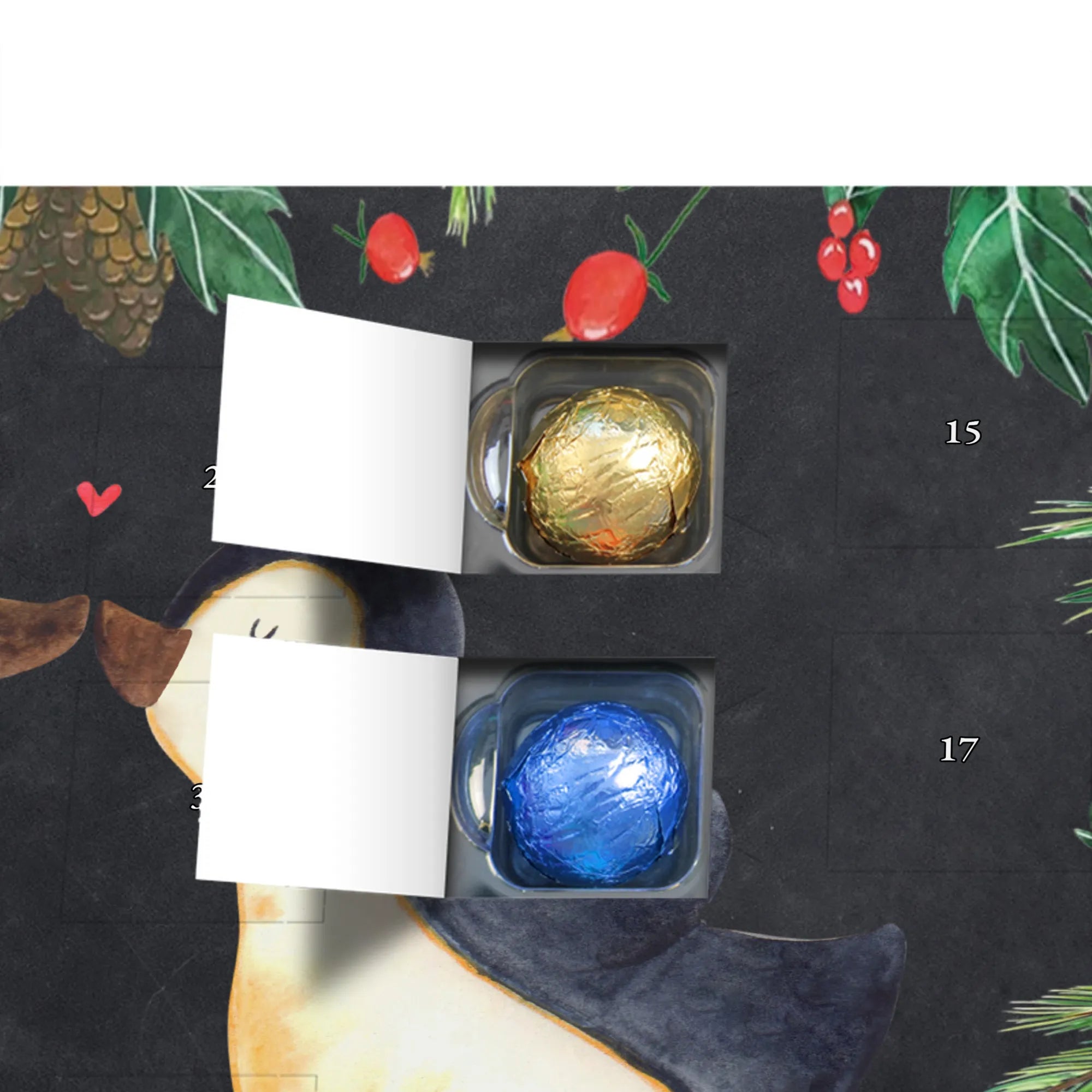 Wunderschöner Adventskalender mit Schokolade von Mr. & Mrs. Panda – für alle, die Advent und Design lieben. Dieser Adventskalender mit Schokolade ist liebevoll bedruckt mit wunderschönen Motiven & Sprüchen von Mr. & Mrs. Panda und ist nicht personalisierbar, aber mit viel Liebe zum Detail gefertigt. Brillante Druckqualität mit seidenmatter Oberflächenveredelung sorgt für einen edlen Look, und die bedruckten Seitenflächen geben dem Kalender eine besondere Optik. Maße: 233 mm x 178 mm x 24 mm. Dank seiner stabilen Verarbeitung kannst du ihn aufstellen oder ganz einfach aufhängen – Besonderheit: kann aufgehängt oder aufgestellt werden. Gefüllt mit MARKENNAMEN Schokolade und leckeren Schokoladenkugeln, bringt er jeden Tag ein kleines Glückserlebnis. Wichtige Hinweise: (Kann Spuren von Haselnüssen, Mandeln, Gluten und Soja enthalten!), bitte kühl und trocken lagern. Ob als Geschenk, Mitbringsel oder Adventsdeko – dieser Kalender zaubert ein Lächeln und sorgt für gemütliche Vorfreude. Viel Freude beim Entdecken der süßen Überraschungen wünscht dir Mr. & Mrs. Panda!