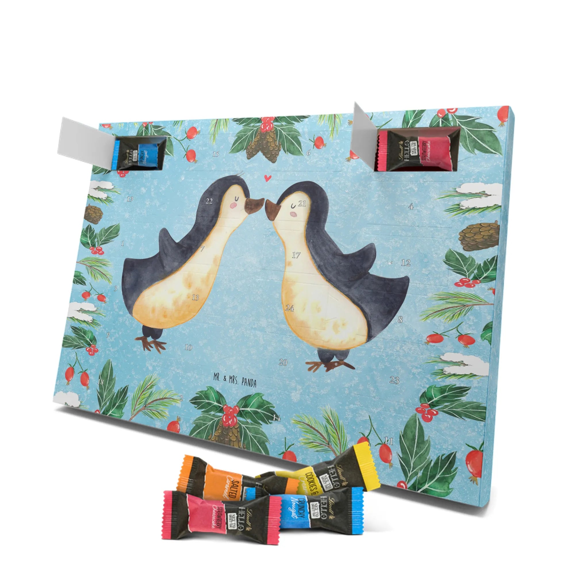 Weihnachts Kalender Pinguine Kuss - Classic - mit Spruch - Eisblau