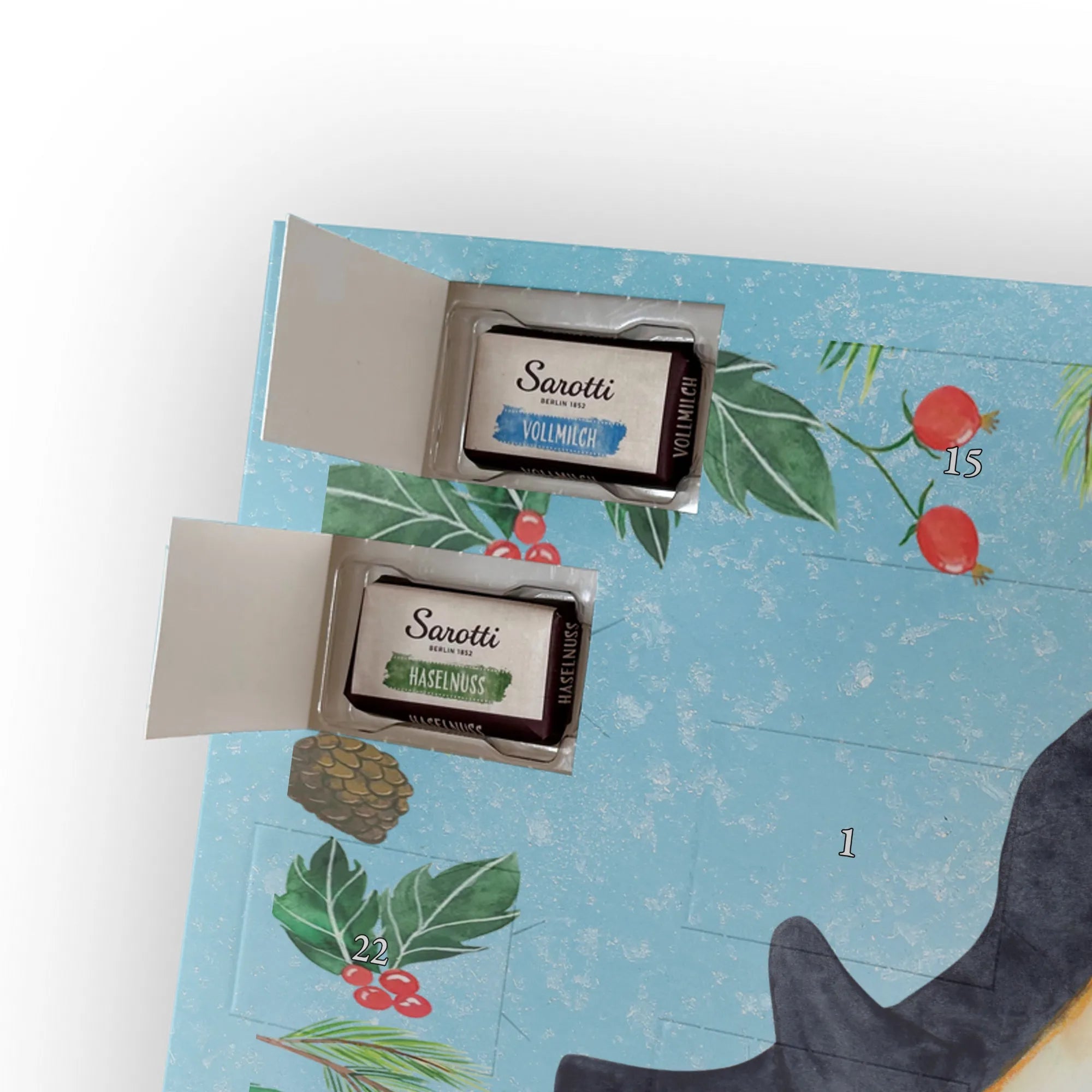 Adventskalender Schokolade von Mr. & Mrs. Panda – eine liebevolle Kombination aus hübschem Design und süßem Inhalt. Der Kalender ist bedruckt mit wunderschönen Motiven & Sprüchen von Mr. & Mrs. Panda und besticht durch brillante Druckqualität mit seidenmatter Oberflächenveredelung. Die Seitenflächen sind ebenfalls bedruckt, wodurch der Kalender rundum ein Hingucker ist. Er ist nicht personalisierbar. Maße: 325 mm x 225 mm x 27 mm. Besonders praktisch: Du kannst ihn sowohl aufgehängt als auch aufgestellt nutzen, je nachdem, wo er bei dir am schönsten wirkt. Gefüllt ist der Kalender mit Ritter Sport Schokowürfeln in verführerischen Sorten – Mousse au Chocolat, Schoko Crisp, Voll-Nuss in Nougatcreme, Karamell Duo, Joghurt und Erdbeer-Joghurt. Wichtiger Hinweis: Es handelt sich um einen Kalender gefüllt mit Ritter Sport Schokolade, nicht um einen Kalender der Marke Ritter Sport. Schenke deinen Liebsten oder dir selbst tägliche Schokoglücksmomente mit diesem charmanten Adventskalender.