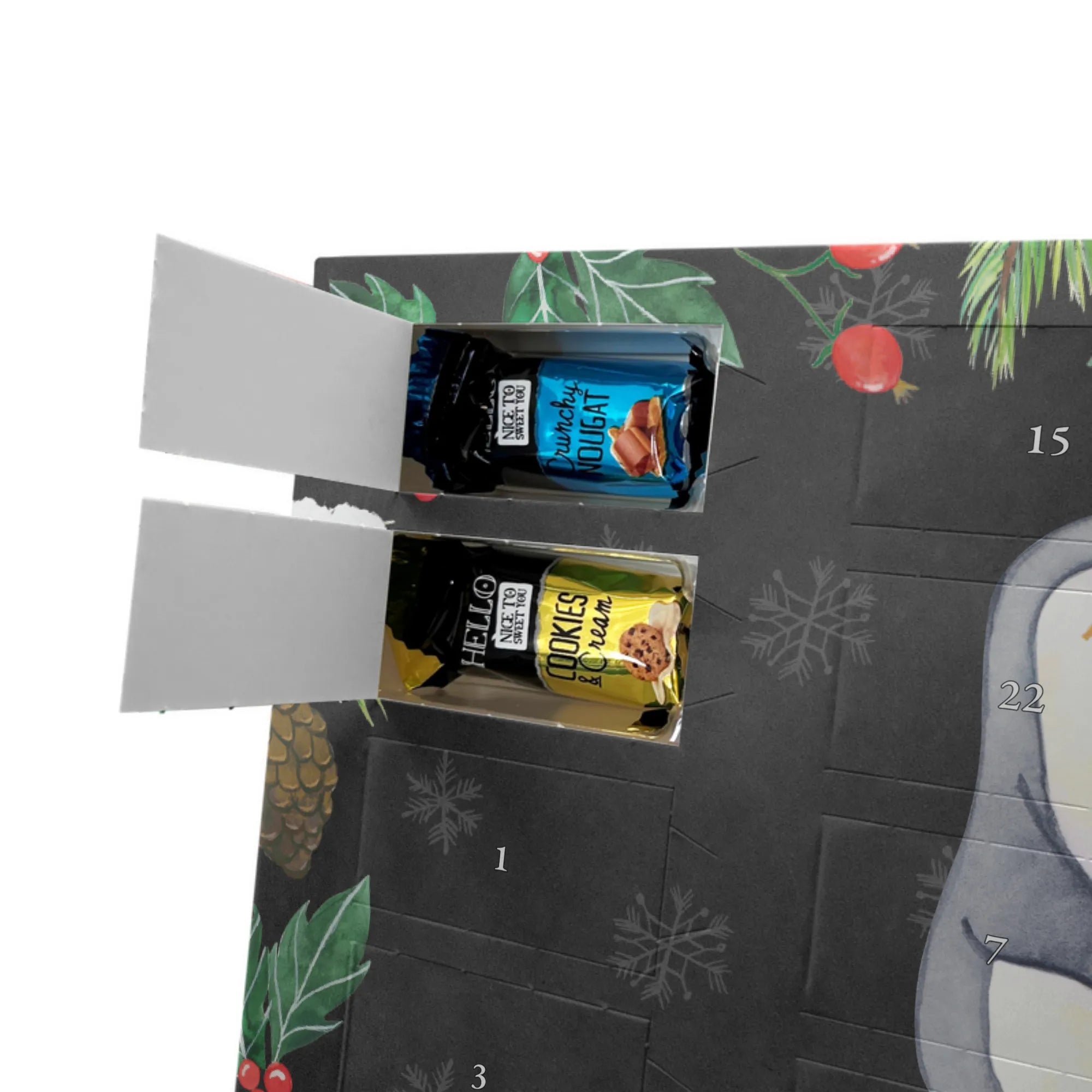 Adventskalender Schokolade von Mr. & Mrs. Panda – eine liebevolle Kombination aus hübschem Design und süßem Inhalt. Der Kalender ist bedruckt mit wunderschönen Motiven & Sprüchen von Mr. & Mrs. Panda und besticht durch brillante Druckqualität mit seidenmatter Oberflächenveredelung. Die Seitenflächen sind ebenfalls bedruckt, wodurch der Kalender rundum ein Hingucker ist. Er ist nicht personalisierbar. Maße: 325 mm x 225 mm x 27 mm. Besonders praktisch: Du kannst ihn sowohl aufgehängt als auch aufgestellt nutzen, je nachdem, wo er bei dir am schönsten wirkt. Gefüllt ist der Kalender mit Ritter Sport Schokowürfeln in verführerischen Sorten – Mousse au Chocolat, Schoko Crisp, Voll-Nuss in Nougatcreme, Karamell Duo, Joghurt und Erdbeer-Joghurt. Wichtiger Hinweis: Es handelt sich um einen Kalender gefüllt mit Ritter Sport Schokolade, nicht um einen Kalender der Marke Ritter Sport. Schenke deinen Liebsten oder dir selbst tägliche Schokoglücksmomente mit diesem charmanten Adventskalender.