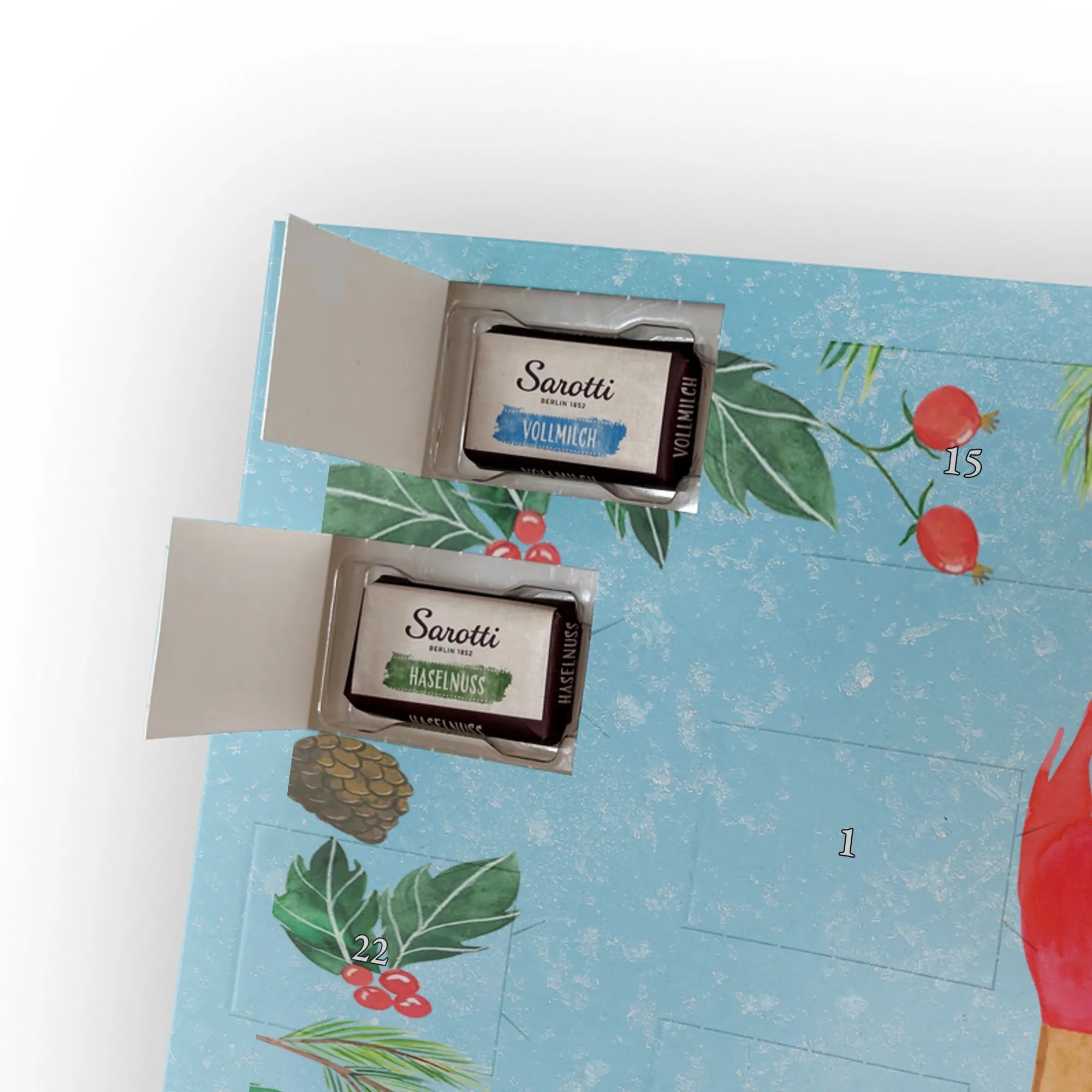 🐼 Adventskalender mit Schokolade, liebevoll bedruckt, seidenmatt veredelt.