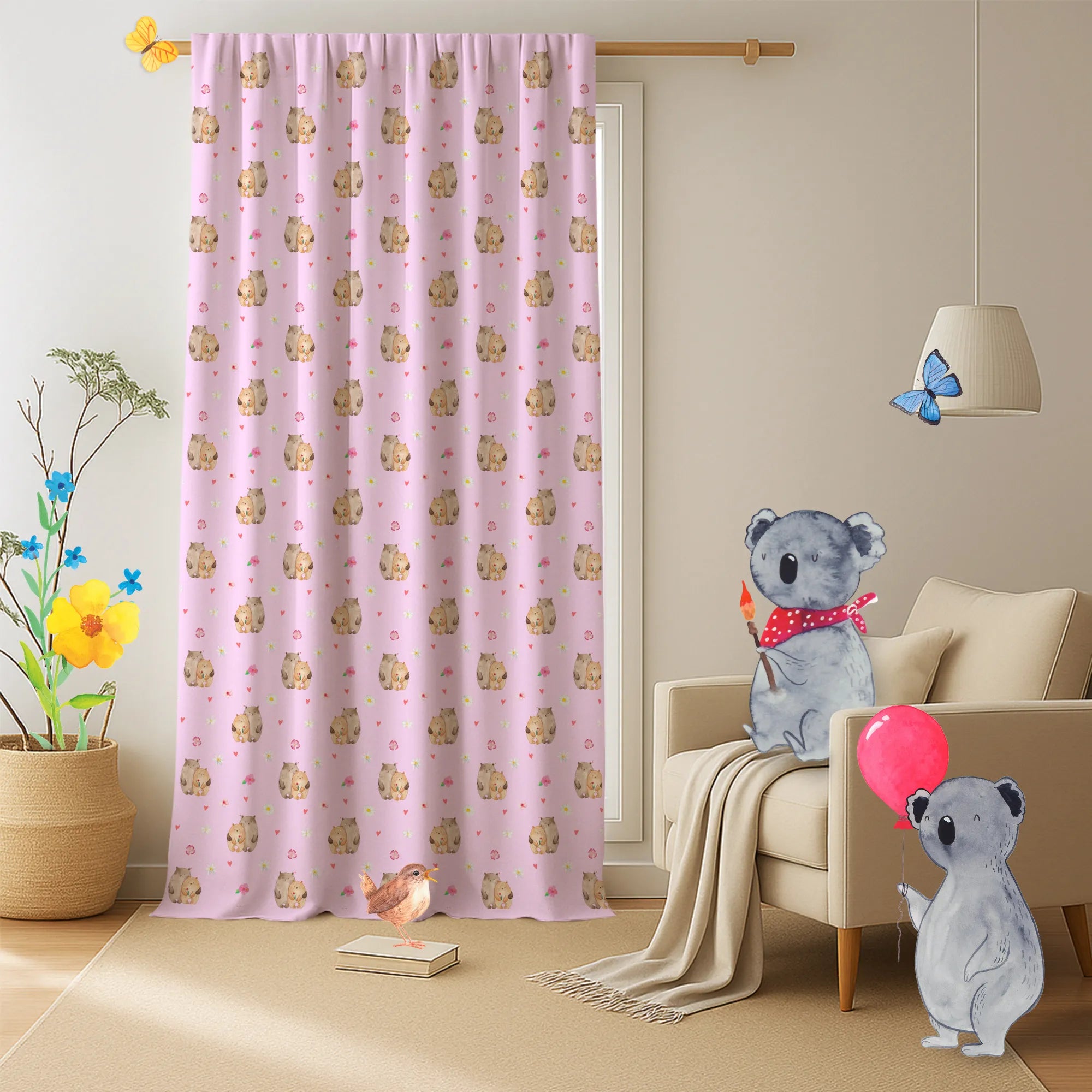 Gardine von Mr. & Mrs. Panda – Dein neuer Lieblingsvorhang für gemütliche Räume! Unsere Gardine ist liebevoll gestaltet und mit zauberhaften Motiven bedruckt, die jedem Kinderzimmer oder Schlafzimmer sofort einen fröhlichen, aber stilvollen Touch geben. Gefertigt aus langlebigem Drillgewebe aus 100% Baumwolle bietet sie angenehme Haptik und eine schöne Fallstruktur. Maße: 1400 mm x 2500 mm machen sie vielseitig einsetzbar für verschiedenste Fensterformate. Der Stoff ist robust und sorgt für eine dezente Abdunkelung, sodass du Privatsphäre schaffst ohne die Leichtigkeit des Raums zu verlieren. Dieser Vorhang ist nicht personalisierbar, dafür besticht er durch hochwertige Druckqualität und stabile Verarbeitung. Pflegeleicht: Einfach bei maximal 30°C waschen, so bleiben die Farben frisch und leuchtend. Die Aufhängung geht schnell von der Hand, egal ob an Stange oder Schiene. Ob du das Kinderzimmer kindgerecht verschönern willst oder dem Schlafzimmer eine sanfte, natürliche Note geben möchtest – diese Gardine kombiniert Funktion und Design auf wunderbare Weise. Mr. & Mrs. Panda bringt dir handverliebte Motive und Qualität, die man sieht und fühlt.