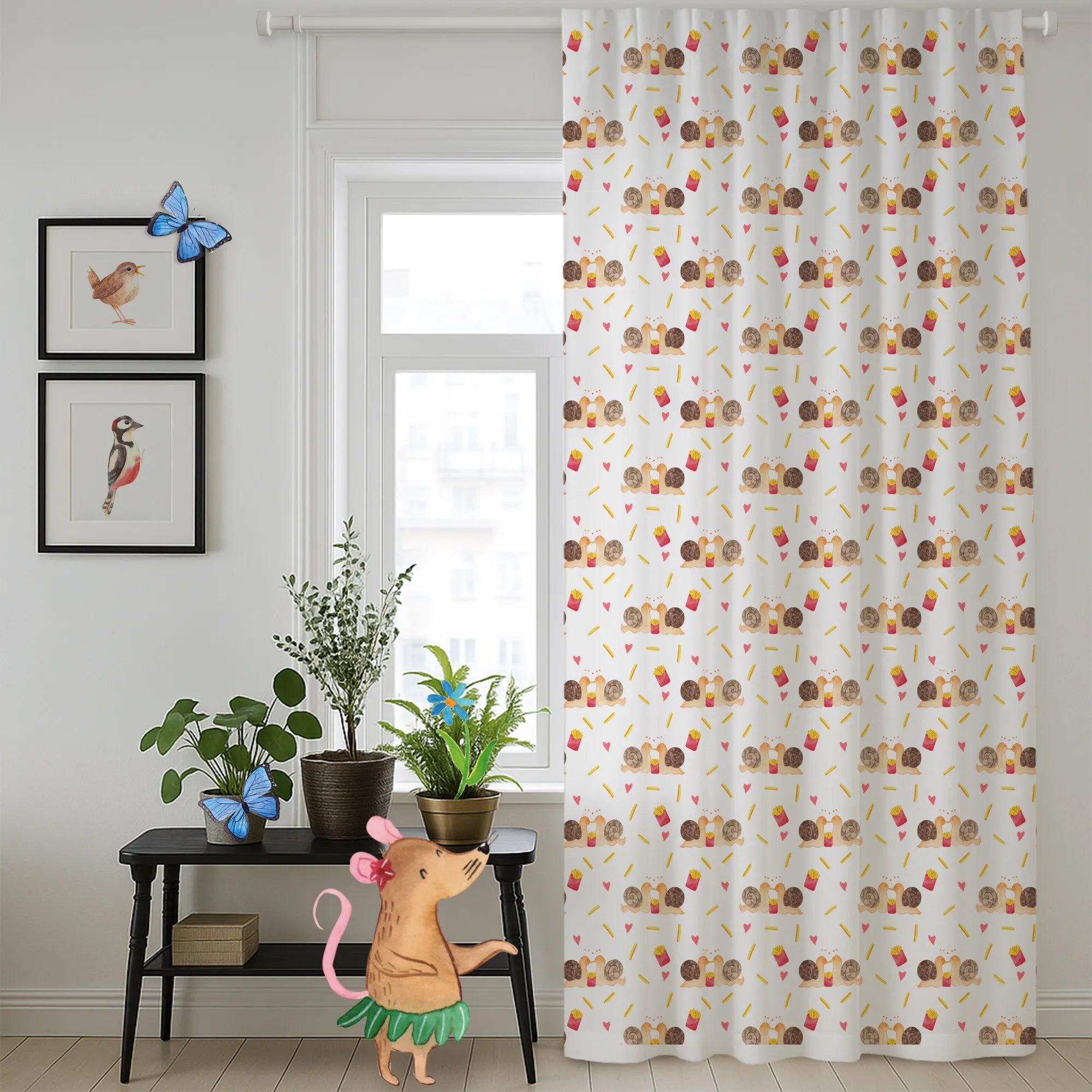 Gardine von Mr. & Mrs. Panda – Dein neuer Lieblingsvorhang für gemütliche Räume! Unsere Gardine ist liebevoll gestaltet und mit zauberhaften Motiven bedruckt, die jedem Kinderzimmer oder Schlafzimmer sofort einen fröhlichen, aber stilvollen Touch geben. Gefertigt aus langlebigem Drillgewebe aus 100% Baumwolle bietet sie angenehme Haptik und eine schöne Fallstruktur. Maße: 1400 mm x 2500 mm machen sie vielseitig einsetzbar für verschiedenste Fensterformate. Der Stoff ist robust und sorgt für eine dezente Abdunkelung, sodass du Privatsphäre schaffst ohne die Leichtigkeit des Raums zu verlieren. Dieser Vorhang ist nicht personalisierbar, dafür besticht er durch hochwertige Druckqualität und stabile Verarbeitung. Pflegeleicht: Einfach bei maximal 30°C waschen, so bleiben die Farben frisch und leuchtend. Die Aufhängung geht schnell von der Hand, egal ob an Stange oder Schiene. Ob du das Kinderzimmer kindgerecht verschönern willst oder dem Schlafzimmer eine sanfte, natürliche Note geben möchtest – diese Gardine kombiniert Funktion und Design auf wunderbare Weise. Mr. & Mrs. Panda bringt dir handverliebte Motive und Qualität, die man sieht und fühlt.