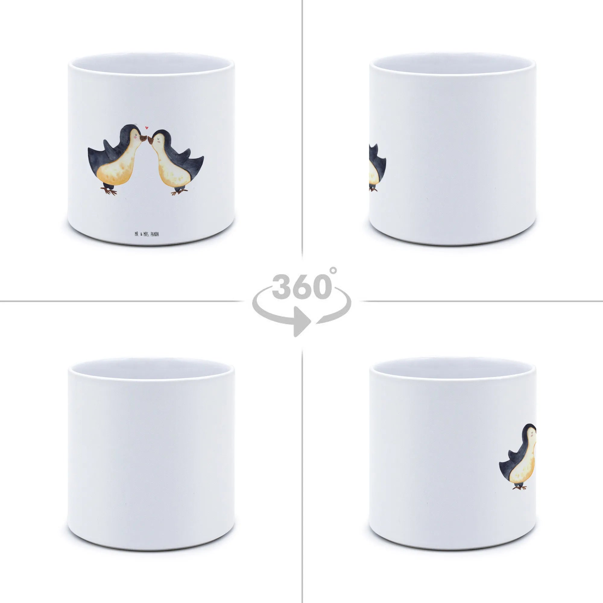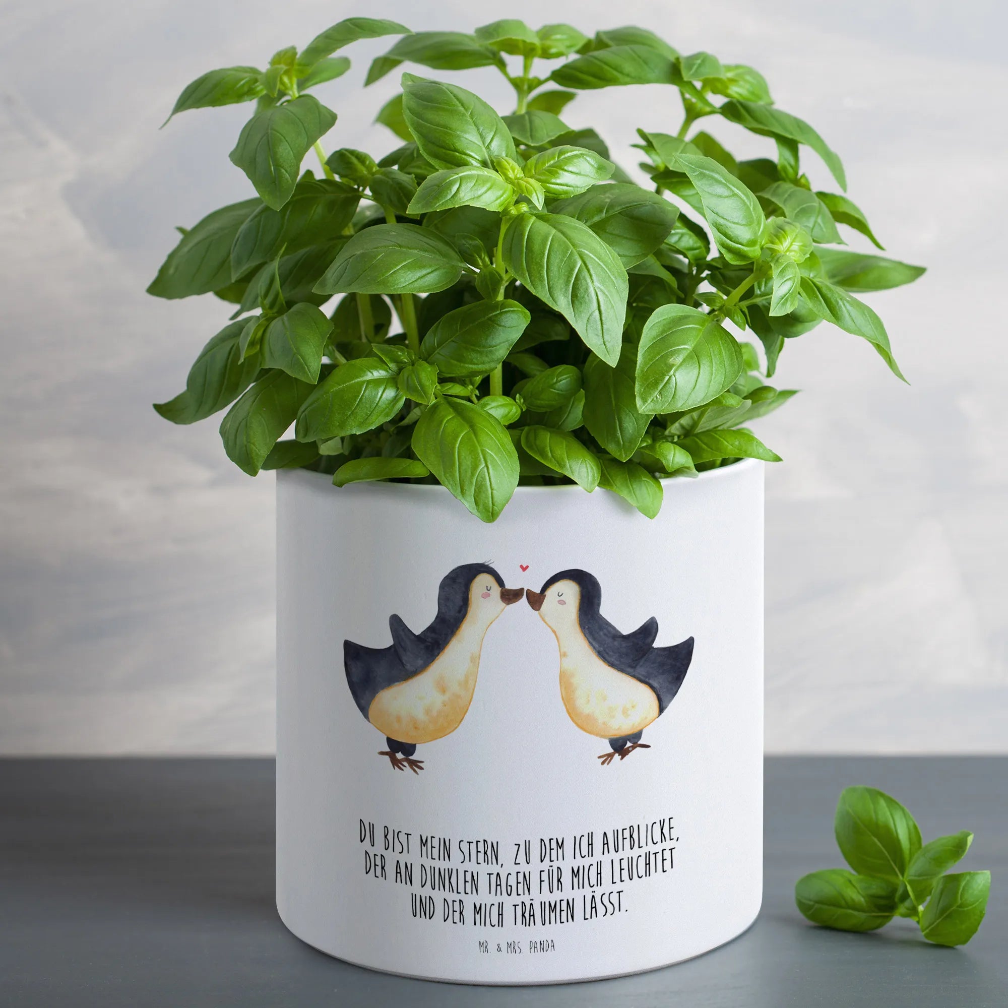 Der XL Blumentopf "Pinguin Liebe" aus der Kollektion Liebe von Mr. & Mrs. Panda ist das perfekte Geschenk für all jene, die die Liebe und die Schönheit von Pflanzen gleichermaßen schätzen. Der wunderschön gestaltete Keramiktopf zeigt ein niedliches Pinguin-Paar, das liebevoll aneinander kuschelt und sich sanft an den Schnäbeln berührt. Diese süße Darstellung ist nicht nur ein echter Blickfang, sondern bringt auch eine Botschaft der Zuneigung und Freundschaft mit sich - ideal für Paare, die ihre Liebe symbolisch ausdrücken möchten.