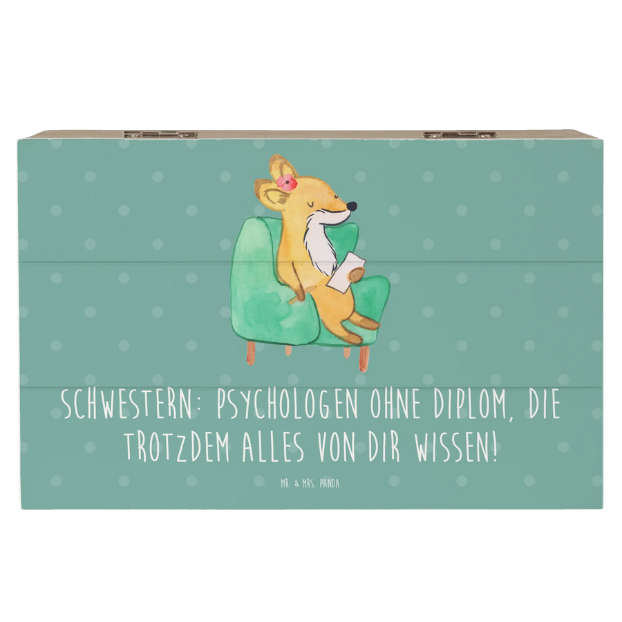 Suchst du nach dem perfekten Geschenk für deine Schwester? Dann ist die liebevoll gestaltete Holzkiste von Mr. & Mrs. Panda genau das Richtige! Diese wunderschöne Schatzkiste, bedruckt mit dem sentimentalen Spruch "Schwestern: Psychologen ohne Diplom, die trotzdem alles von dir wissen!", fängt die besondere Bindung zwischen Geschwistern wunderbar ein.