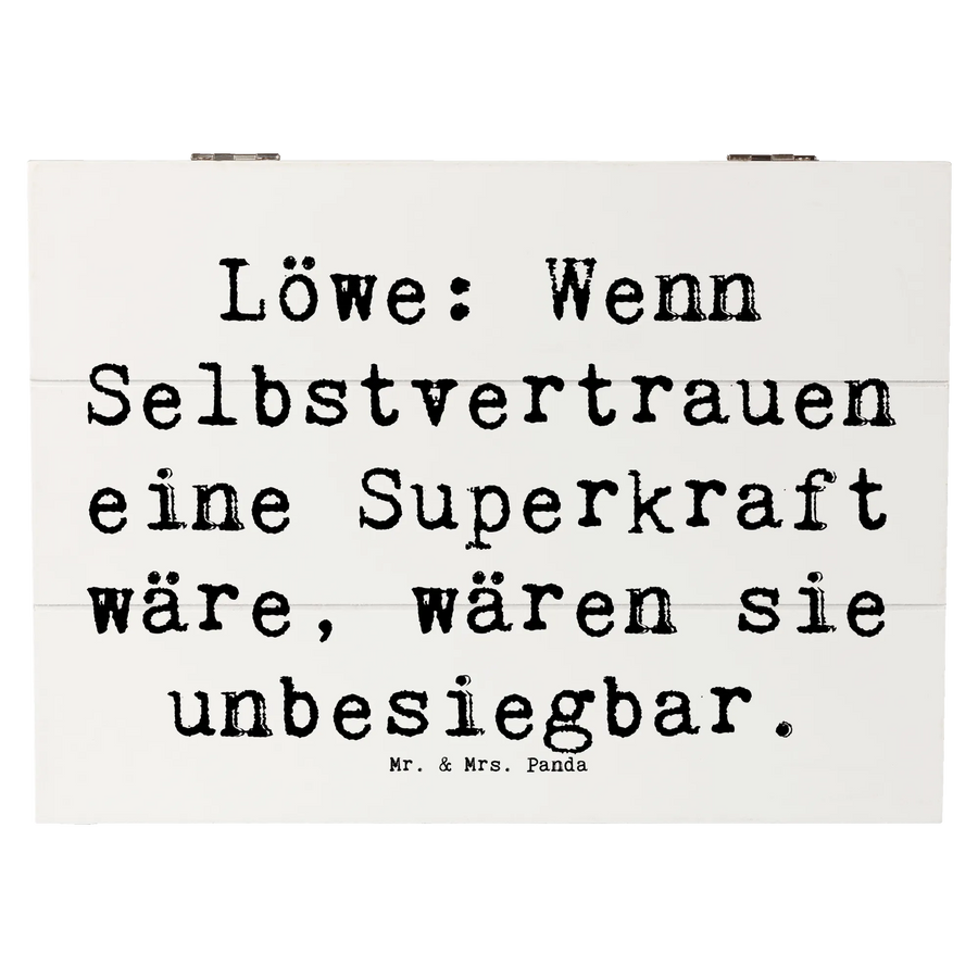 Mit den Maßen 25 x 18 cm und einem robusten Material aus hochwertiger Holzfaser bietet sie ausreichend Platz für deine Erinnerungen, Fotos oder besondere Andenken. Der niedliche Löwe, der auf der Kiste prangt, wird mit dem Spruch "Löwe: Wenn Selbstvertrauen eine Superkraft wäre, wären sie unbesiegbar." ergänzt, was sie zu einem besonders bedeutungsvollen Geschenk macht.