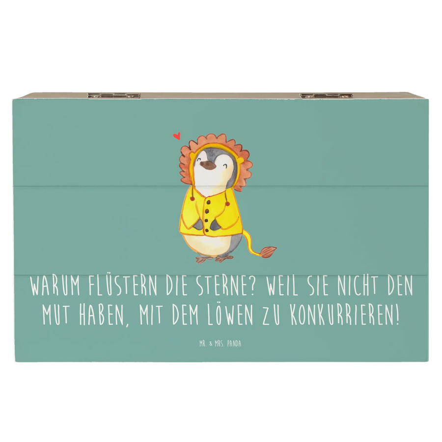 Entdecke die charmante Holzkiste mit dem Motiv Löwe aus der Kollektion Sternzeichen von Mr. & Mrs. Panda! Diese liebevoll gestaltete Kiste ist nicht nur ein ganz besonderes Aufbewahrungsstück, sondern auch ein ideales Geschenk für alle Löwe-Geborenen, egal ob zu Geburtstagen, Hochzeiten oder einfach nur so!