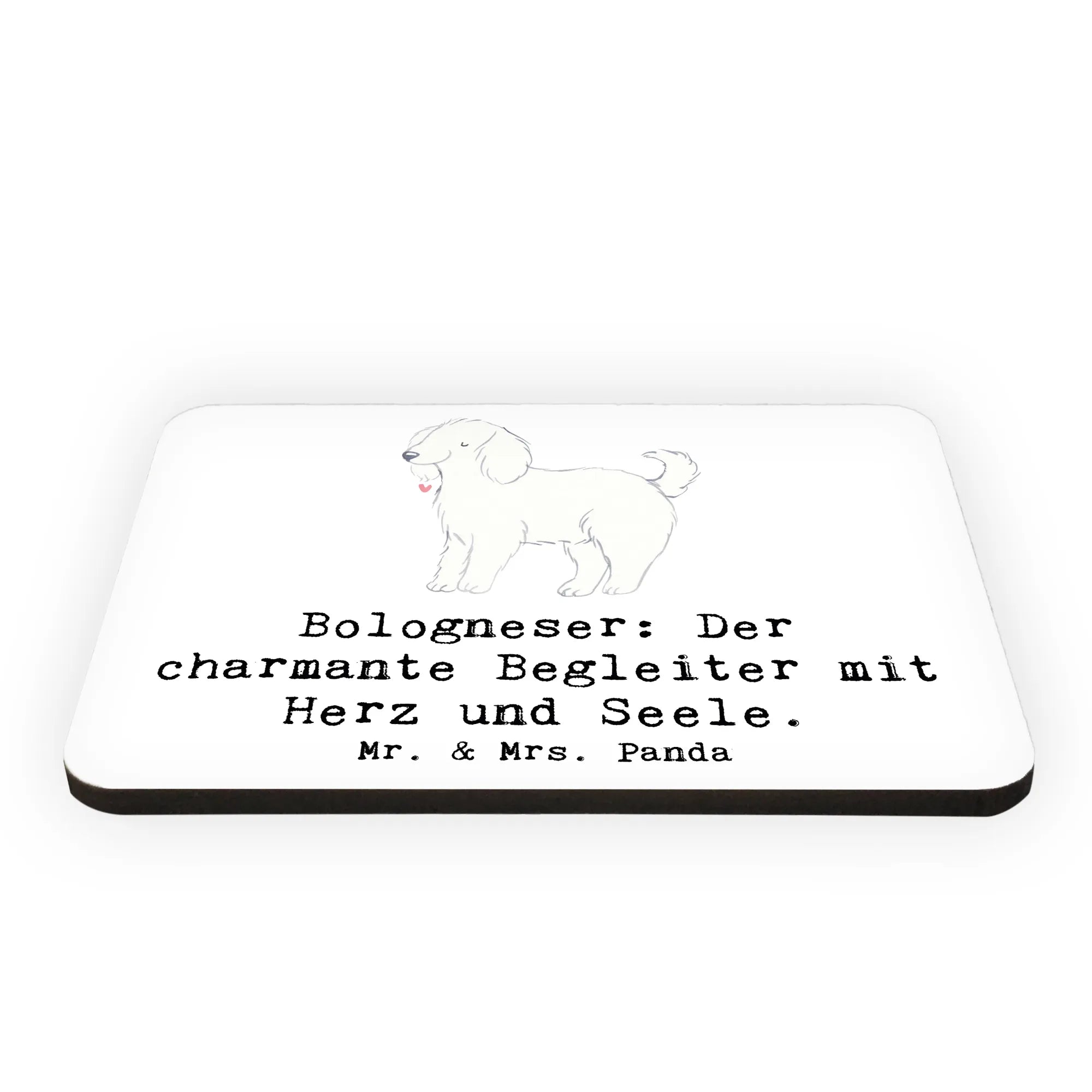 Der Bologneser Magnet aus der Hunderassen Kollektion von Mr. & Mrs. Panda ist ein echtes Highlight für alle Hundefans. Dieser bezaubernde Kühlschrankmagnet zeigt nicht nur das süße Motiv des Bolognesers, sondern trägt auch den liebevollen Spruch: "Bologneser: Der charmante Begleiter mit Herz und Seele." Mit seinen Maßen von 52 mm x 74 mm x 5 mm ist er perfekt geeignet, um deine wichtigsten Notizen, Einkaufslisten oder Erinnerungen am Kühlschrank oder Whiteboard zu befestigen.