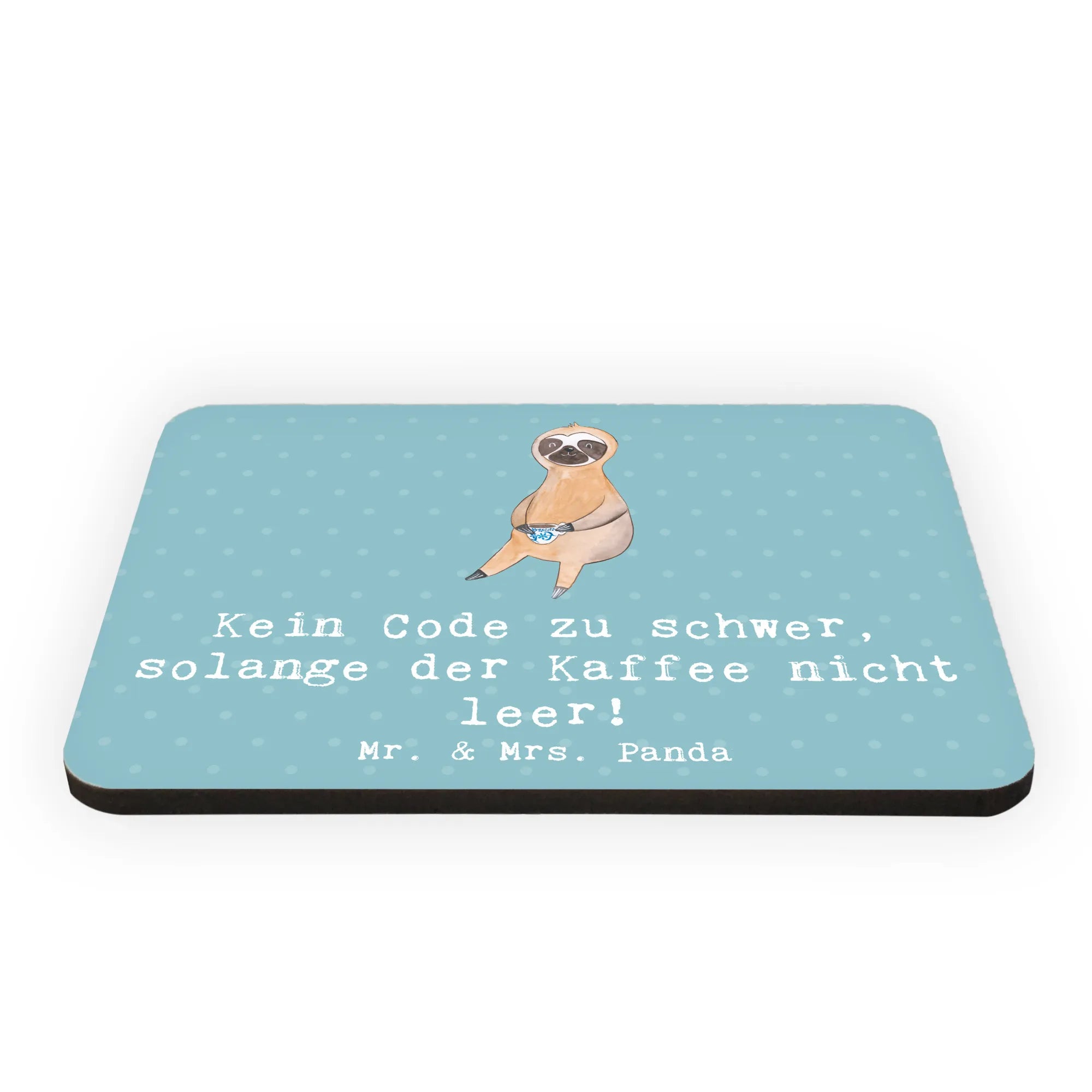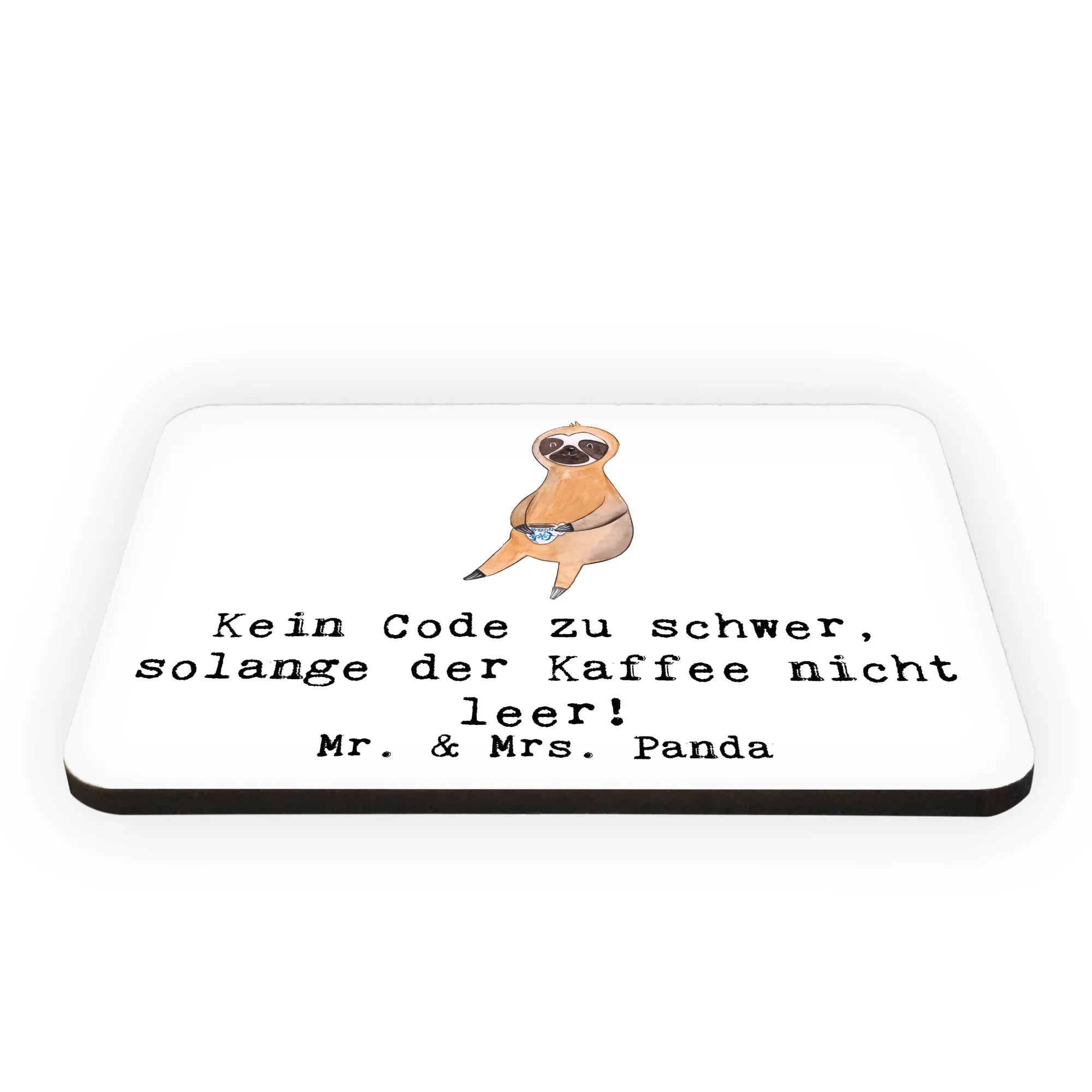 Mit dem charmanten Spruch "Kein Code zu schwer, solange der Kaffee nicht leer!" bringt der Magnet nicht nur Farbe in Deine Küche oder ans Whiteboard, sondern auch ein Lächeln in den Alltag. Die bunte und farbenfrohe Gestaltung mit einem handgezeichneten Motiv von Mrs. Panda zeigt die Liebe zum Detail und begeistert sowohl Programmierer als auch IT-Entwickler.