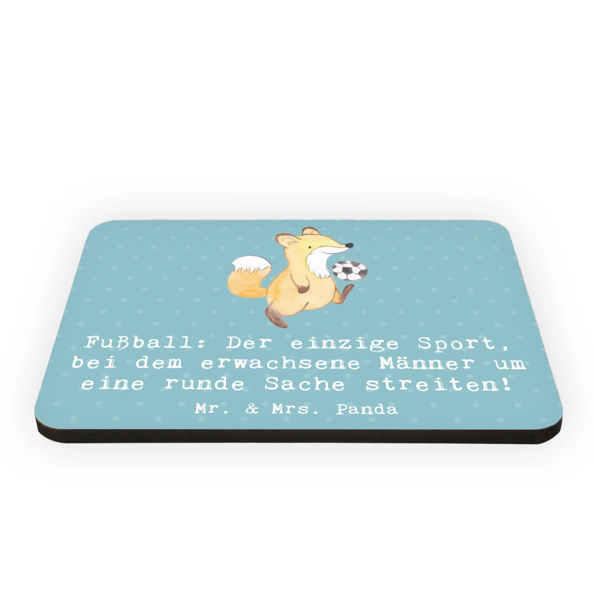 Der Kühlschrankmagnet "Fußball: Der einzige Sport, bei dem erwachsene Männer um eine runde Sache streiten!" von Mr. & Mrs. Panda ist das perfekte Geschenk für alle Fußball-Liebhaber und Sportbegeisterte.