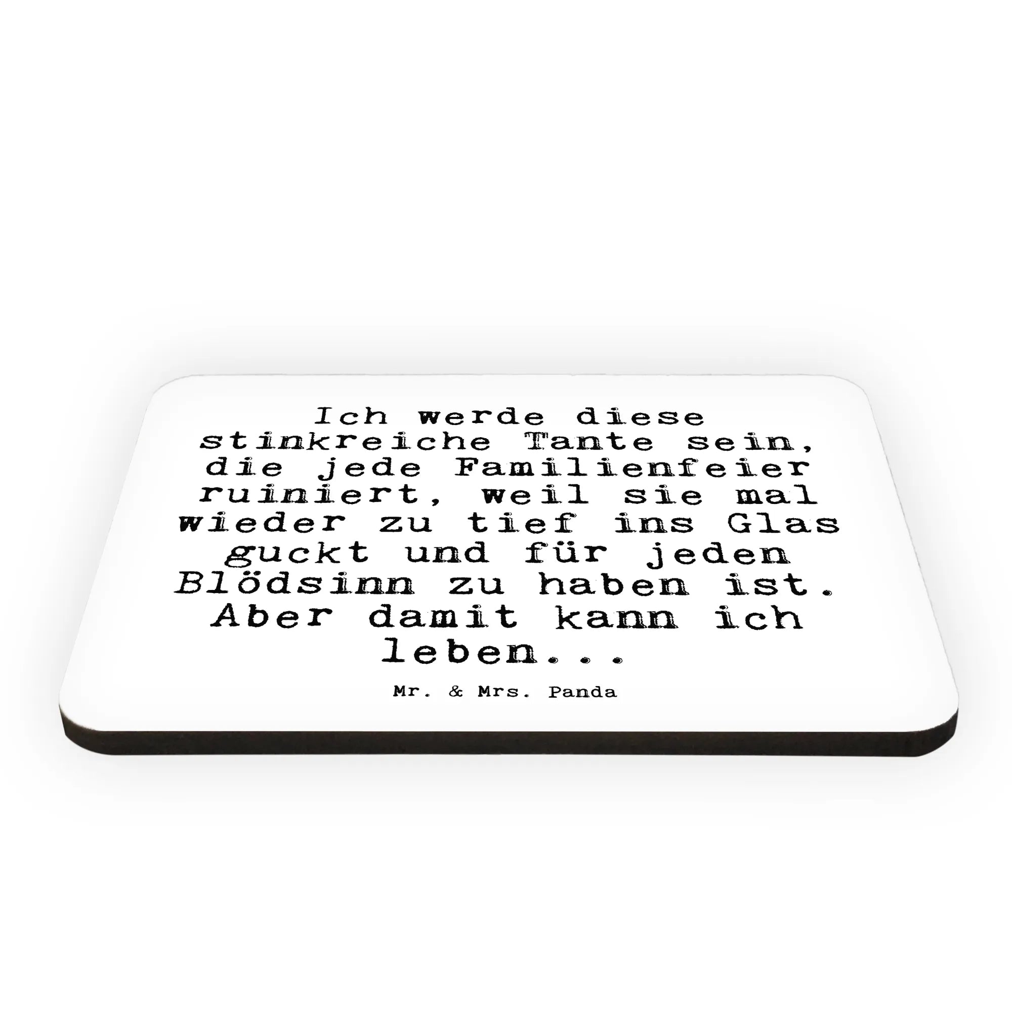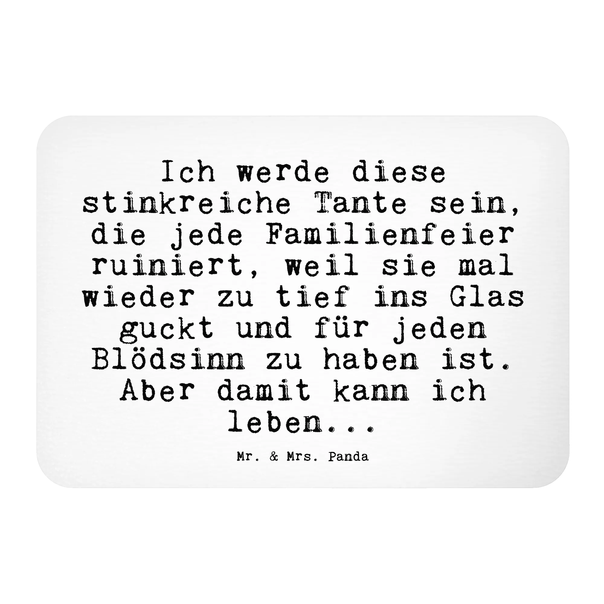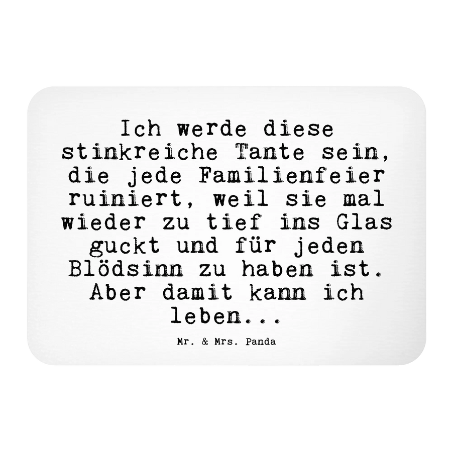 Der Kühlschrankmagnet 'Ich werde diese stinkreiche Tante sein, die jede Familienfeier ruiniert, weil sie mal wieder zu tief ins Glas guckt und für jeden Blödsinn zu haben ist. Aber damit kann ich leben...' von Mr. & Mrs. Panda ist das perfekte Geschenk für deine Familie! 🎉