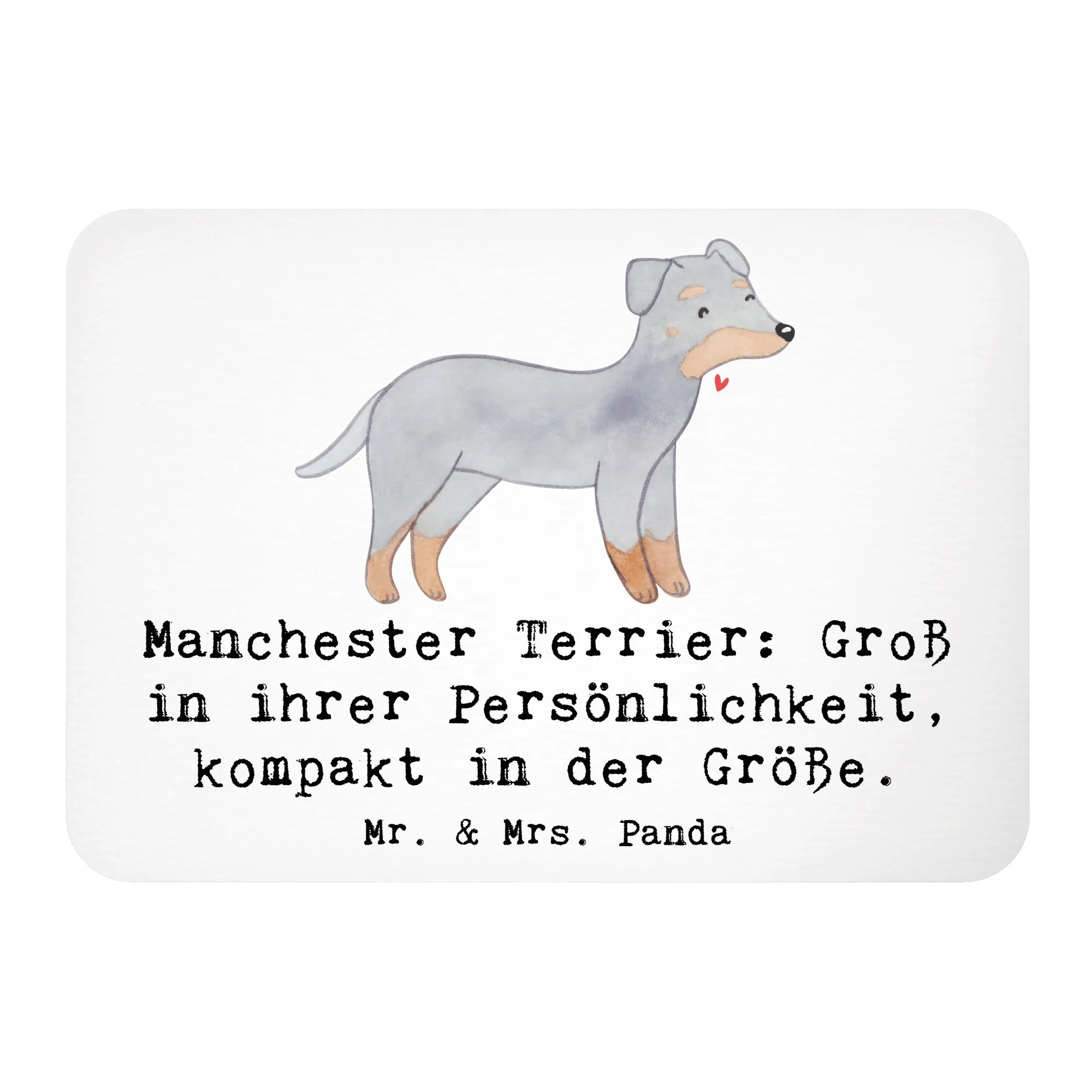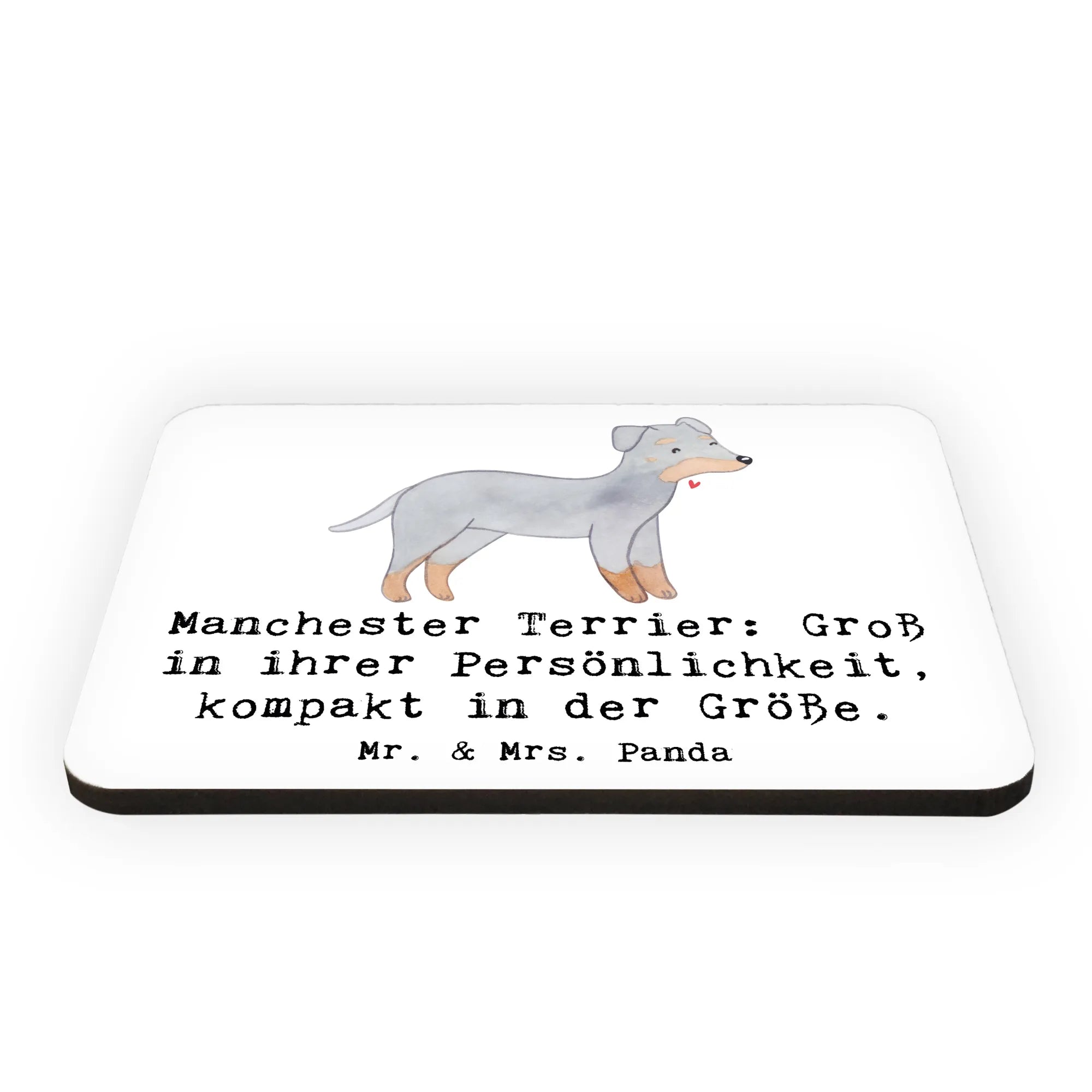Der Manchester Terrier Magnet von Mr. & Mrs. Panda ist ein absolutes Must-Have für jeden Hunde- und Deko-Liebhaber. Mit seinen lebhaften Farben und dem herzlichen Slogan 'Manchester Terrier: Groß in ihrer Persönlichkeit, kompakt in der Größe' zieht er alle Blicke auf sich.