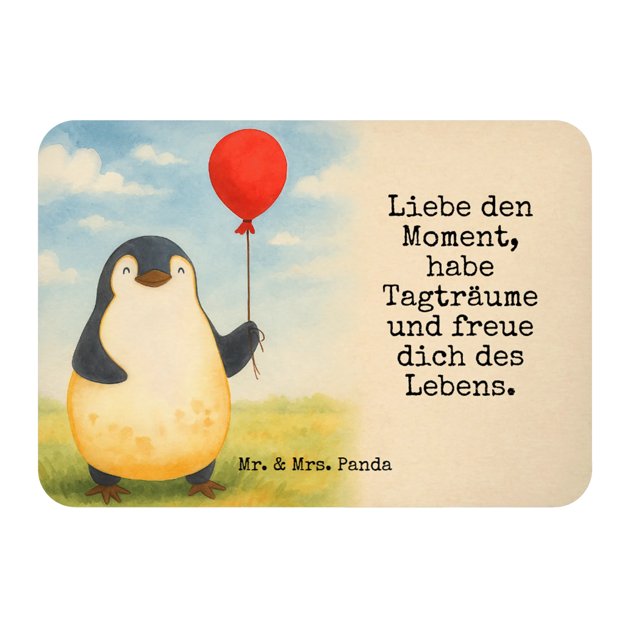 Das Motiv 'Pinguin mit Luftballon' von Mr. & Mrs. Panda ist ein wahrer Schatz für jeden, der das Leben in seinen buntesten Farben erleben möchte. Der niedliche Pinguin, der einen Luftballon liebevoll in seinen Flügeln hält, symbolisiert die unbeschwerte Freude und die Fähigkeit, in jedem Moment Glück zu finden. Es ist eine Einladung, sich von den Sorgen des Alltags zu lösen und die Welt wieder durch die Augen der Kindheit zu sehen – voller Wunder, Hoffnung und unendlicher Möglichkeiten. Dieses Bild ist eine wunderschöne Geschenkidee, die Herzen zum Leuchten bringt, und eine Erinnerung daran, dass die Freude am Leben in den kleinen Gesten zu finden ist. Es ist ein wundervoller Weg, Motivation zu schenken und die Liebe zum Leben zu verkünden.