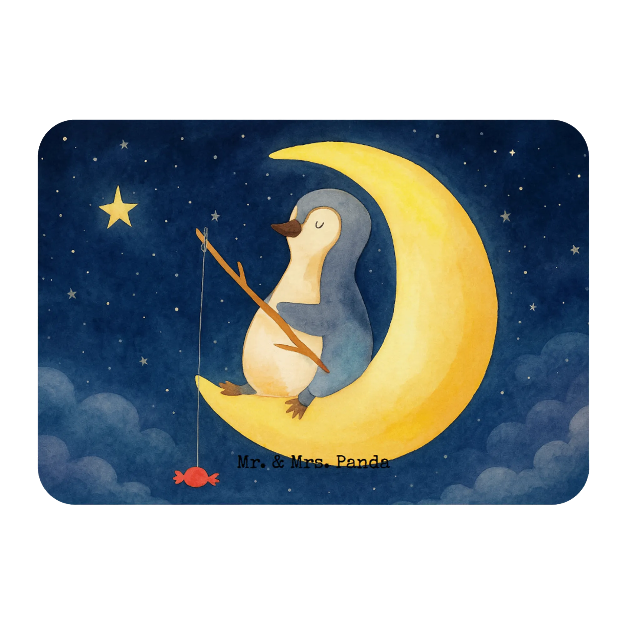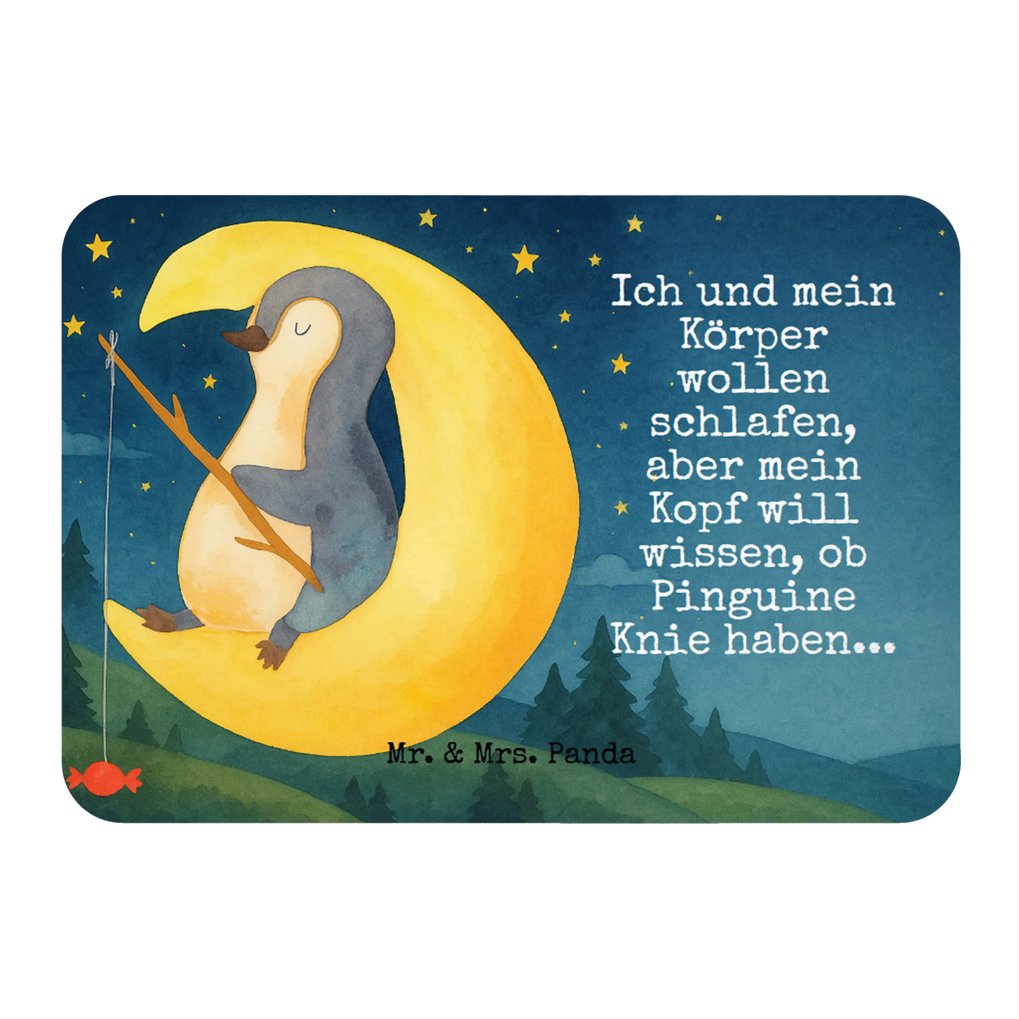 In der Welt von Mr. & Mrs. Panda findet das Außergewöhnliche seinen Platz im Alltäglichen und verwandelt unsere Träume in liebevoll gestaltete Motive. Das 'Pinguin Mond' Design lädt uns in eine nächtliche Szenerie ein, wo ein niedlicher Pinguin gemütlich auf einer Mondsichel ruht und nach Sternen fischt, ein Bonbon sicher am Angelhaken. Dieses entzückende Bild, eingefangen in sanften Blautönen und silbernen Akzenten, scheint direkt aus einem Traum gefischt zu sein. Der humorvolle Spruch, der sich fragt, ob Pinguine Knie haben, fügt eine spielerische Leichtigkeit hinzu, die uns daran erinnert, dass es in Ordnung ist, auch kurz vor dem Einschlafen noch schmunzeln zu müssen. Ein ideales Bild für alle, die eine Oase der Ruhe und Gelassenheit in ihrem Schlafzimmer oder Gästezimmer schaffen möchten, und für diejenigen, die sich nachts mit Schlafstörungen herumschlagen und dabei einen beruhigenden Gedanken brauchen.