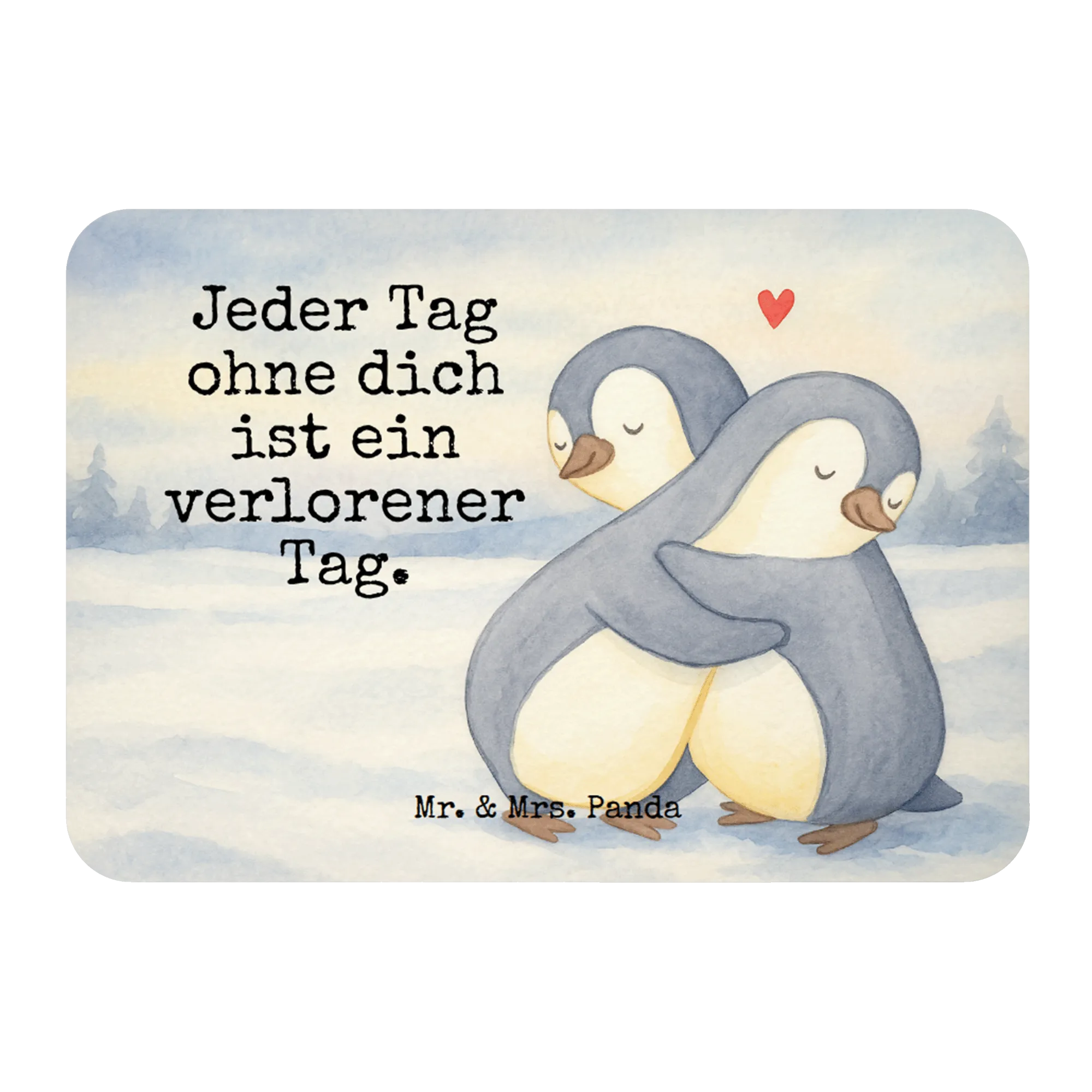 Betrachte die herzliche Umarmung unserer Pinguine – sie zeigen uns, wie schön echte Zuneigung aussehen kann. Mit dem tiefgründigen Spruch 'Jeder Tag ohne dich ist ein verlorener Tag' laden sie dich ein, die wertvollen Momente im Leben zu feiern. Dieses Aquarellmotiv verkörpert die Liebe in einer sanften Farbpalette und eignet sich hervorragend als Geschenk zum Valentinstag oder Jubiläum. Erinnere dich daran, wie wichtig es ist, Zeit mit den Menschen zu verbringen, die dir am Herzen liegen. Bring die Liebe in dein Leben – heute und jeden Tag.