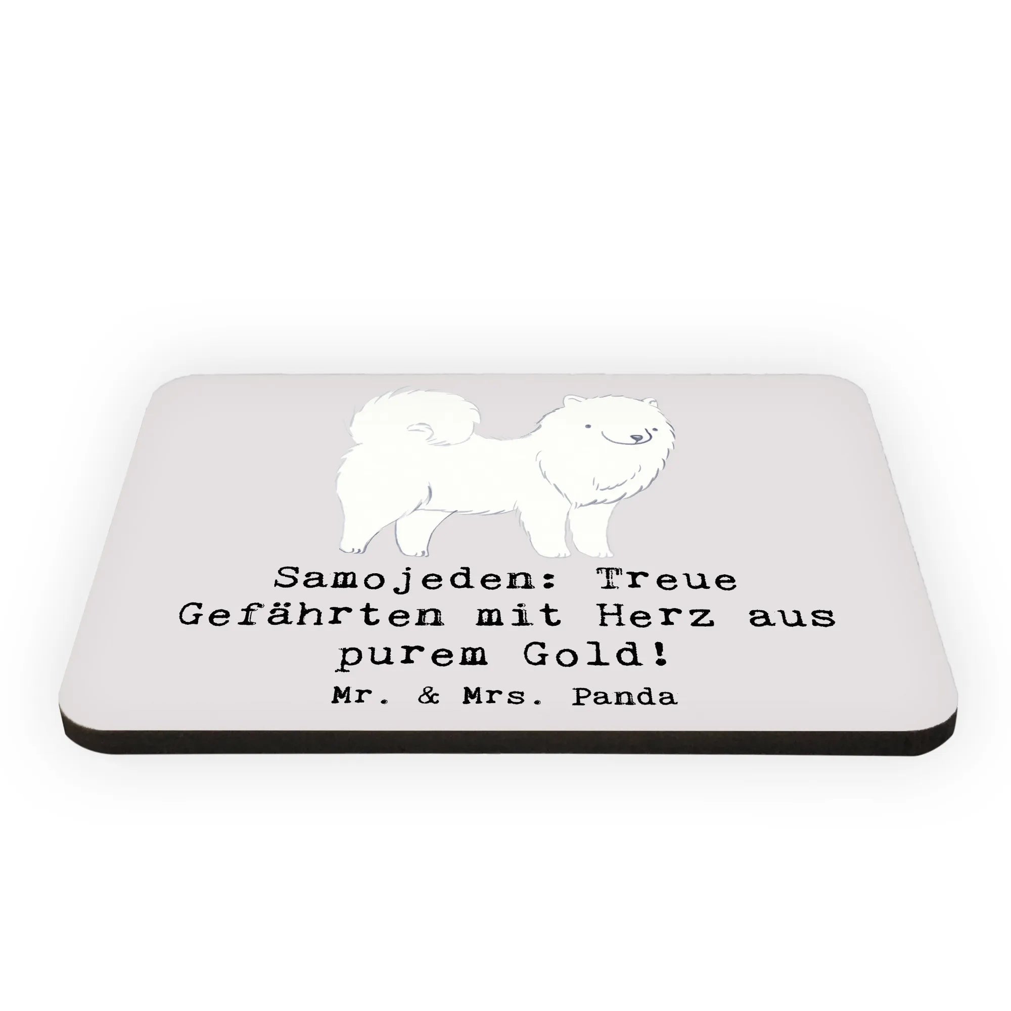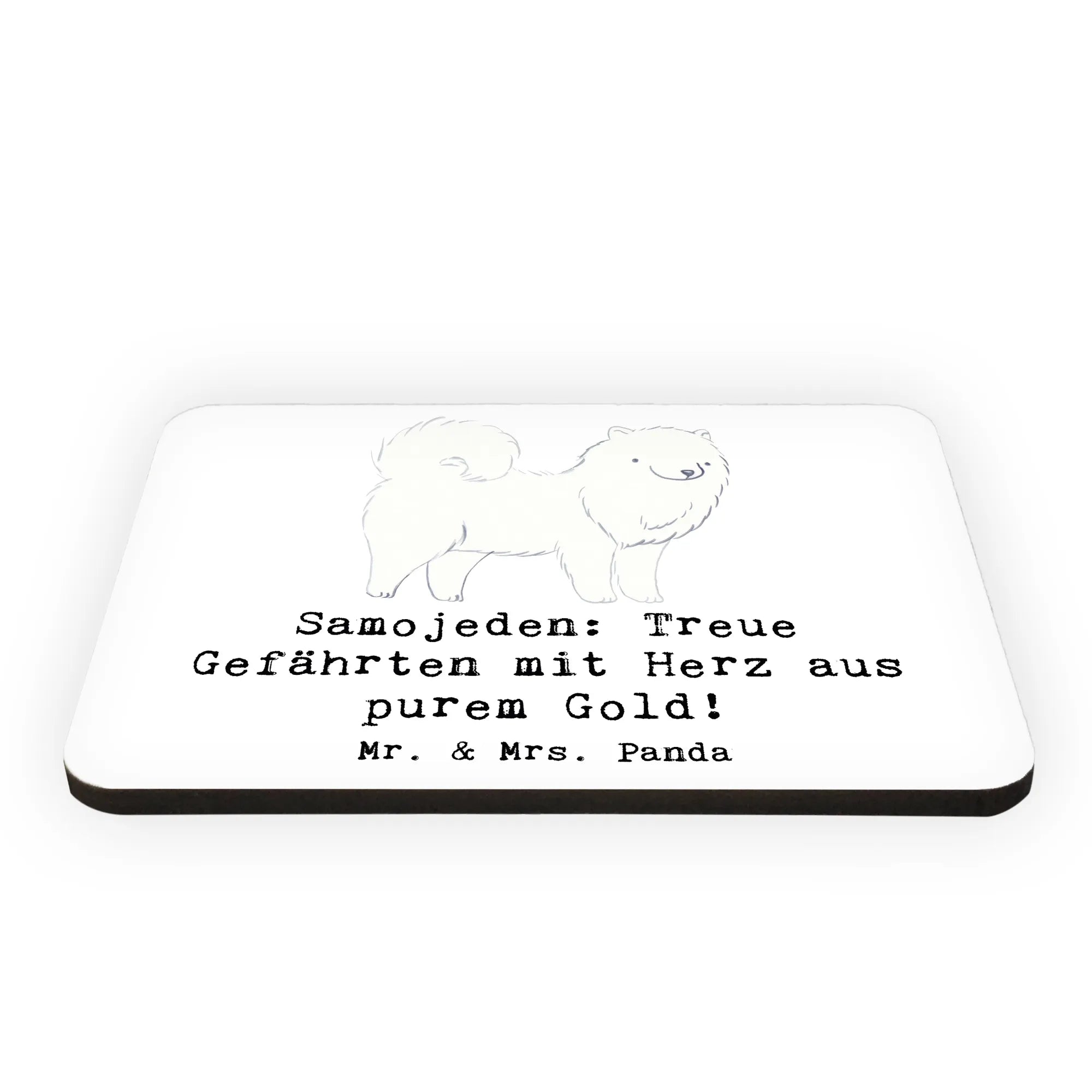 Der Samojede Kühlschrankmagnet von Mr. & Mrs. Panda ist das ideale Geschenk für alle Hundeliebhaber und Samojeden-Fans! Mit seinem entzückenden Design und dem liebevollen Spruch 'Samojeden: Treue Gefährten mit Herz aus purem Gold!' bringt er frischen Wind in jede Küche oder in dein Büro. Deine Freunde und Familie werden sich garantiert über dieses kleine Kunstwerk freuen!