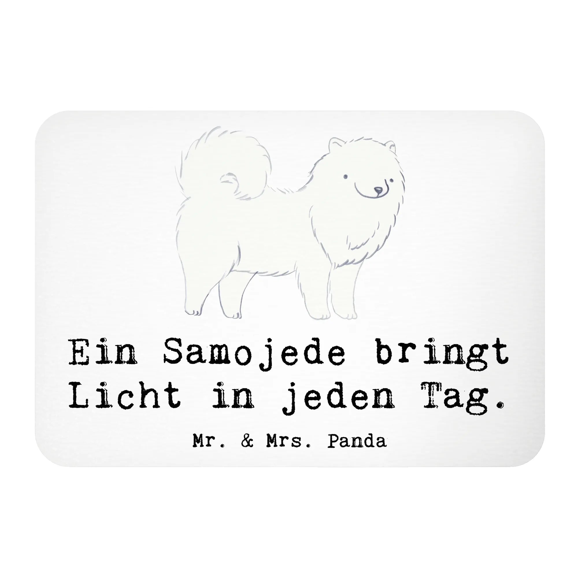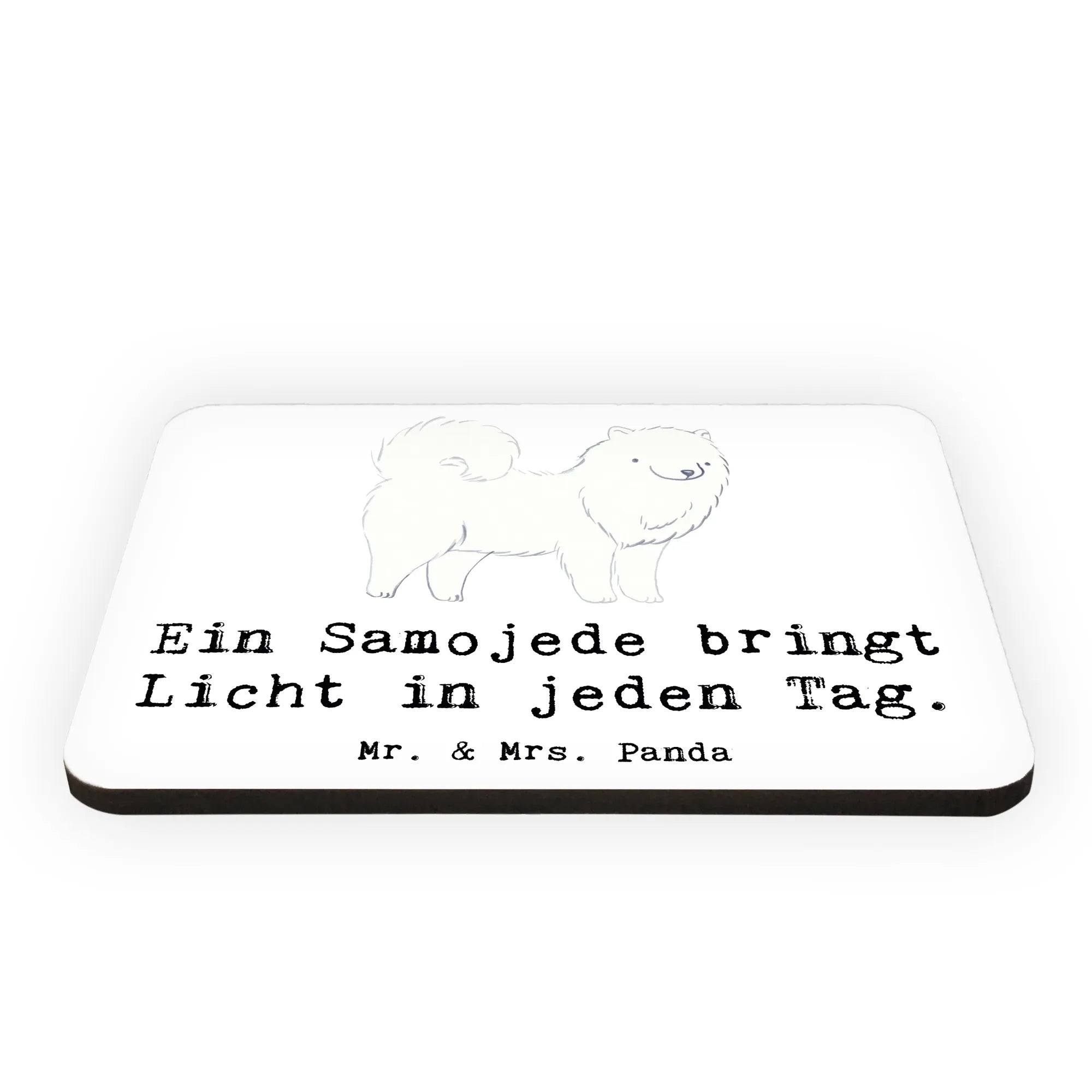 Der Samojede Kühlschrankmagnet von Mr. & Mrs. Panda bringt Freude und Farbe in dein Zuhause! Mit seiner fröhlichen Botschaft "Ein Samojede bringt Licht in jeden Tag." und dem liebevoll handgezeichneten Motiv eines Samojeden ist dieser Magnet nicht nur funktional, sondern auch ein wahrer Blickfang.