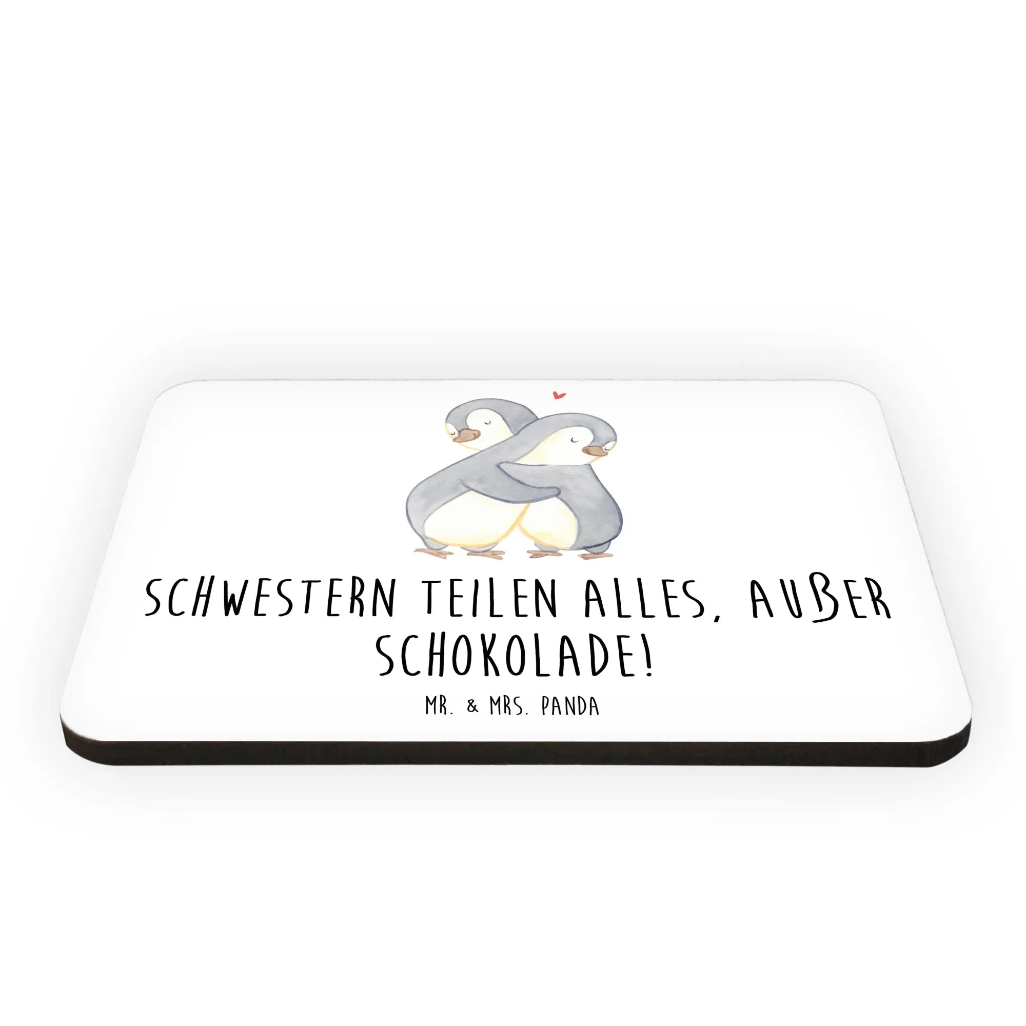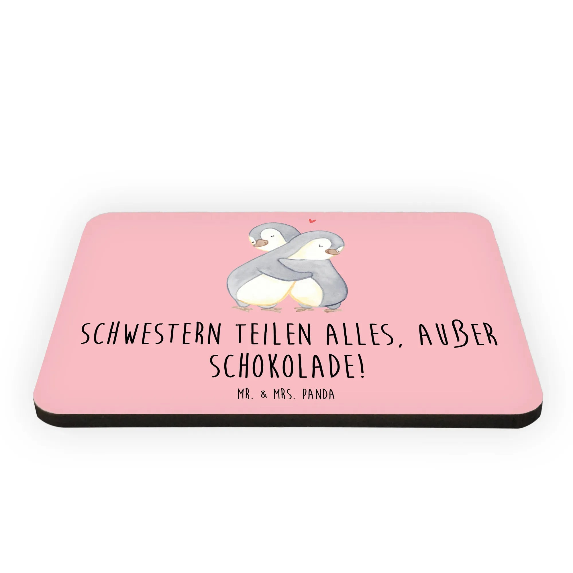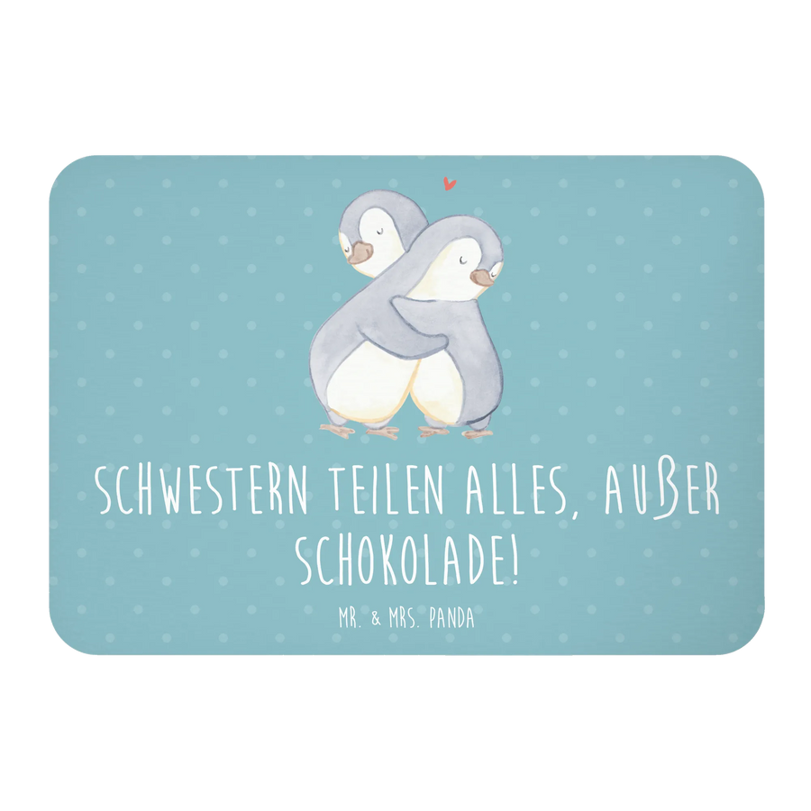 Der Kühlschrankmagnet "Schwestern teilen alles, außer Schokolade!" von Mr. & Mrs. Panda ist das perfekte Geschenk für Schwestern und Geschwister. Ob als besondere Aufmerksamkeit zum Geburtstag, zum Muttertag oder einfach als kleine Überraschung zwischendurch – dieser Magnet bringt nicht nur Farbe an den Kühlschrank, sondern auch ein Lächeln auf die Lippen deiner Schwester!