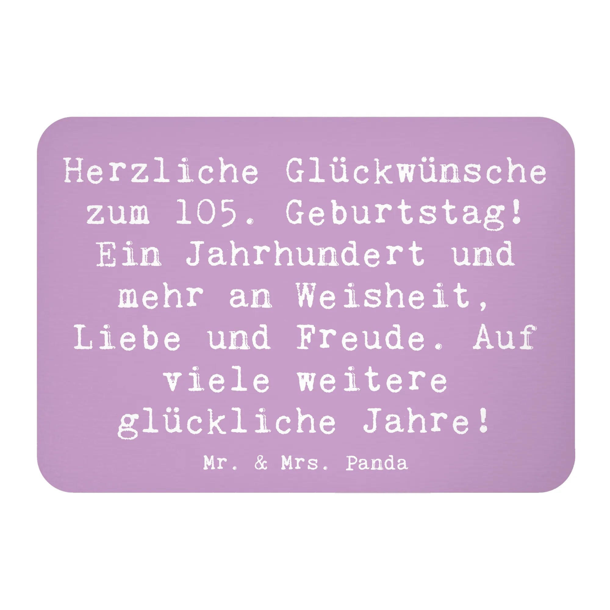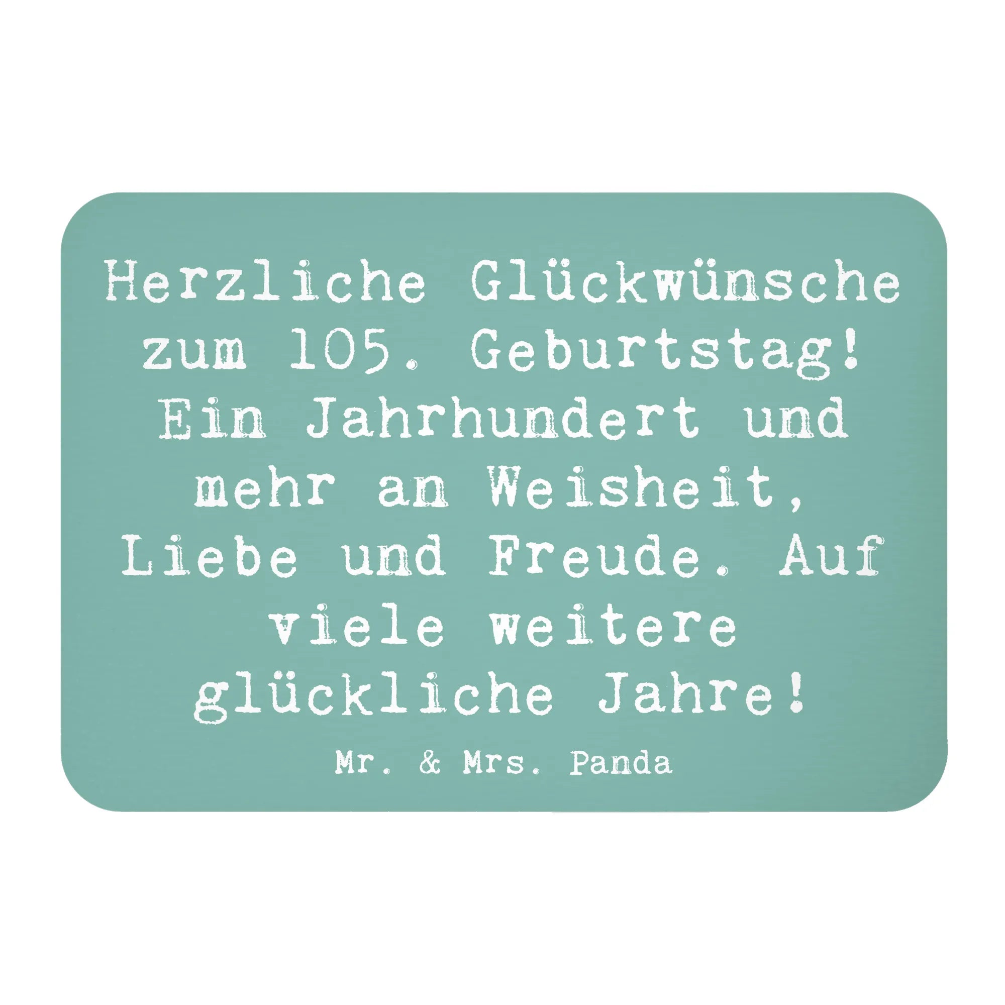 Der Kühlschrankmagnet zum 105. Geburtstag von Mr. & Mrs. Panda ist die perfekte Geschenkidee für alle, die einen besonderen Menschen zu einem so beeindruckenden Alter feiern möchten. Dieser liebevoll gestaltete Magnet ist nicht nur ein praktisches Accessoire für deinen Kühlschrank oder Whiteboard, sondern auch eine herzliche Botschaft. Mit dem Spruch 'Herzliche Glückwünsche zum 105. Geburtstag! Ein Jahrhundert und mehr an Weisheit, Liebe und Freude. Auf viele weitere glückliche Jahre!' bringt dieser Magnet ein Lächeln auf die Gesichter deiner Liebsten.