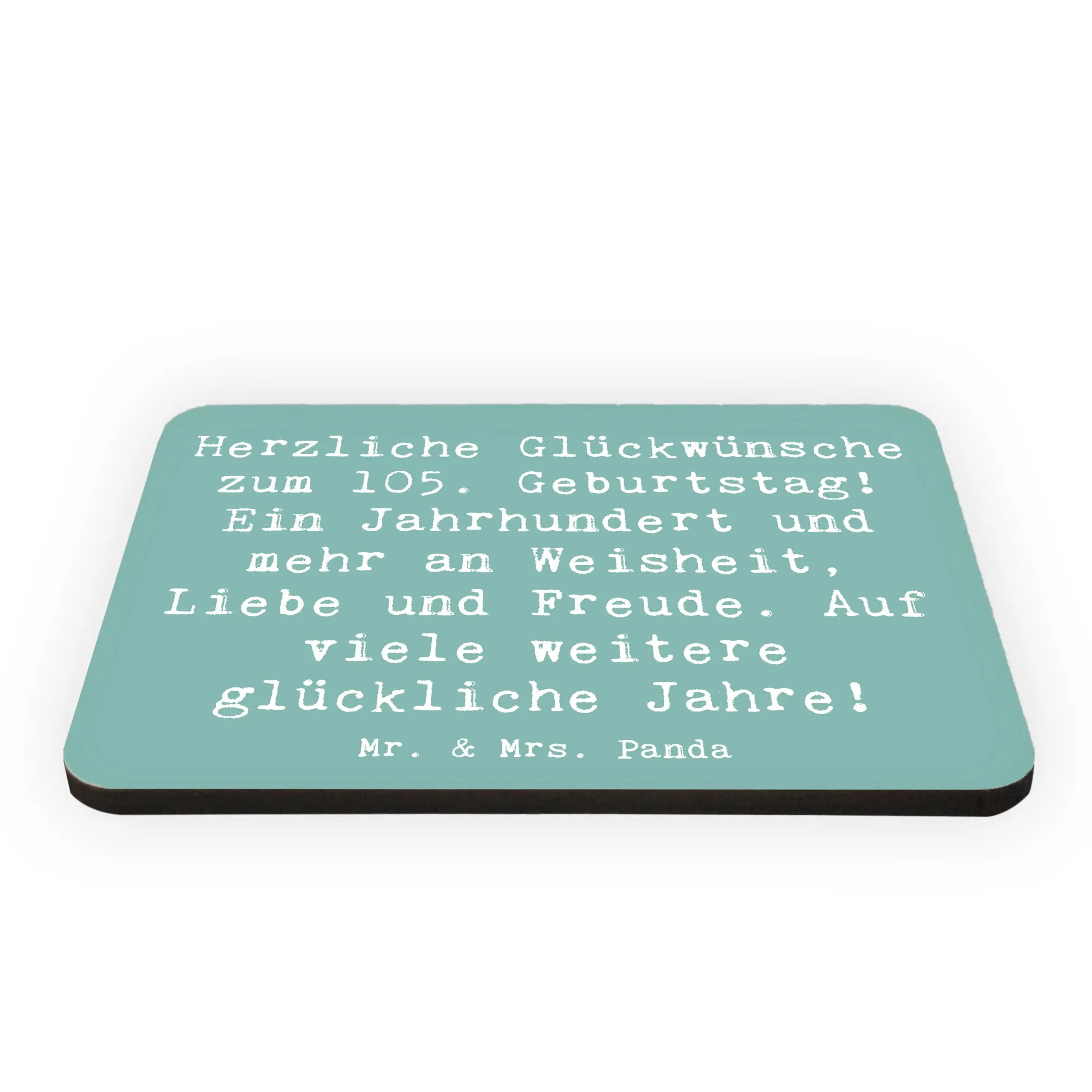 Die Geburtstagskollektion von Mr. & Mrs. Panda umfasst viele weitere liebevoll gestaltete Produkte, die jede Party zum Strahlen bringen. Mit vielen motivierenden Sprüchen und den typischen, bunten Designs von Mr. & Mrs. Panda ist für jeden etwas dabei. Dieser Magnet ist die ideale Kühlschrankdekoration, um den besonderen Tag noch einmal Revue passieren zu lassen. Er erinnert nicht nur an den 105. Geburtstag, sondern auch an all die schönen Momente, die in diesem Jahrhundert erlebt wurden.