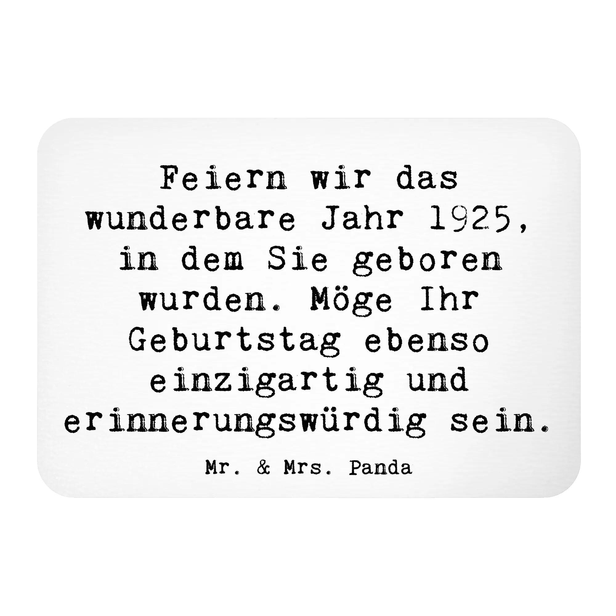 Bei Mr. & Mrs. Panda findest Du viele kreative Geschenkideen, die das Leben verschönern – entdecke auch die gesamte Geburtstag Geburtsjahr-Kollektion und finde weitere wunderschöne Präsente, die garantiert das Herz erwärmen. Lass dieses Jahr 1925 unvergesslich bleiben, egal wann und wo Du es feierst!