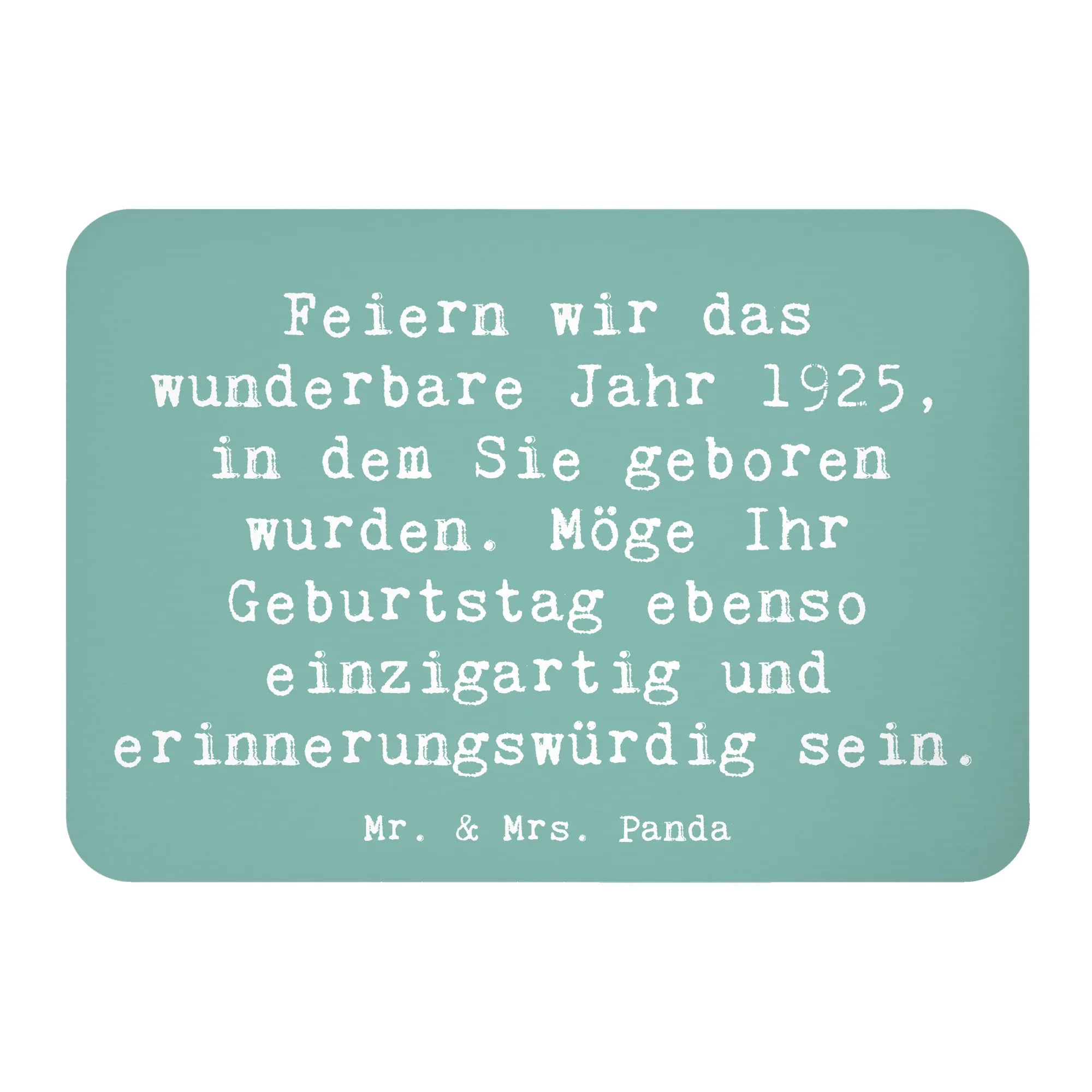 Überrasche deine Liebsten oder dich selbst mit einem Stück Geschichte, das die Einzigartigkeit des Geburtsjahres 1925 feiert. Gestalte jeden Geburtstag unvergesslich mit diesem besonders charmanten Deko-Magneten von Mr. & Mrs. Panda.