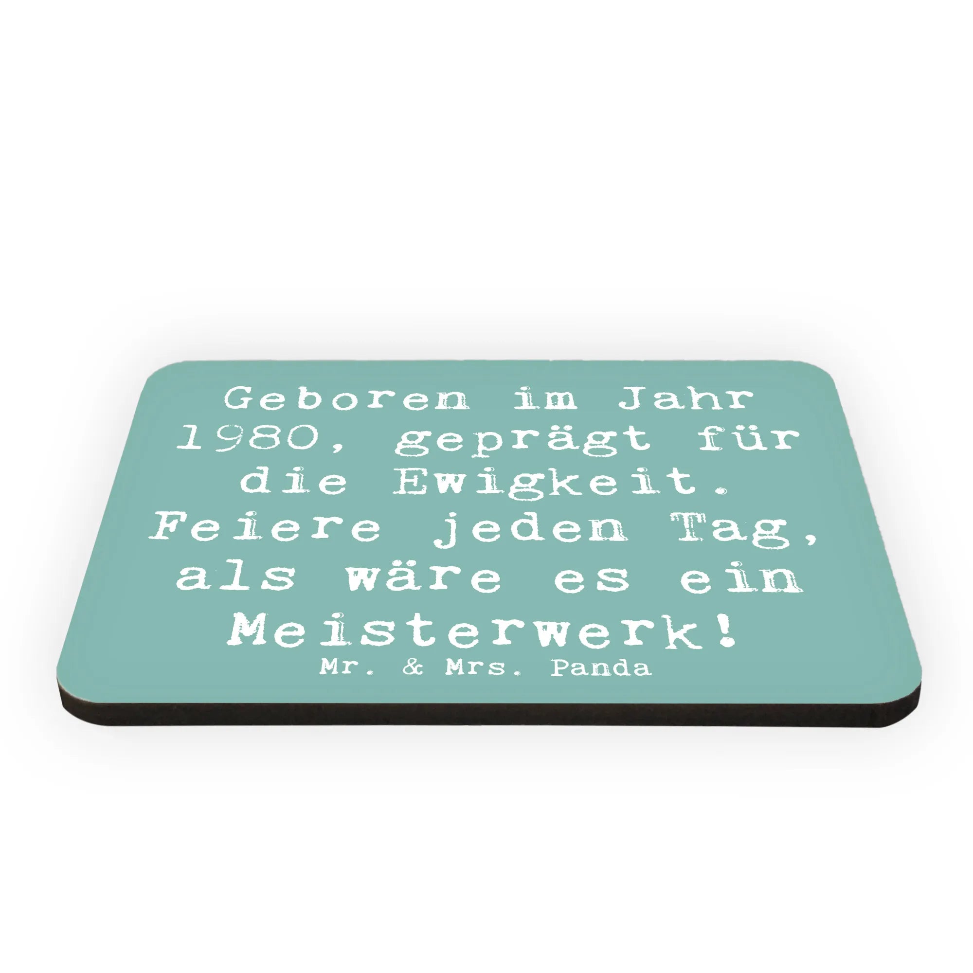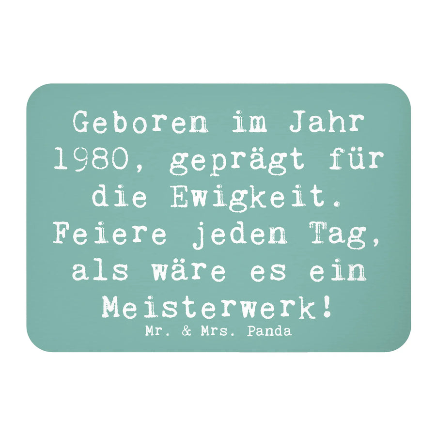 Der Kühlschrankmagnet "Geboren im Jahr 1980, geprägt für die Ewigkeit. Feiere jeden Tag, als wäre es ein Meisterwerk!" von Mr. & Mrs. Panda ist das perfekte Geschenk für all jene, die 1980 das Licht der Welt erblickt haben. Dieser liebevoll gestaltete Magnet ist nicht nur eine tolle Erinnerung an das Geburtsjahr, sondern auch ein wunderschönes Dekorationsstück für den Kühlschrank oder das Whiteboard.