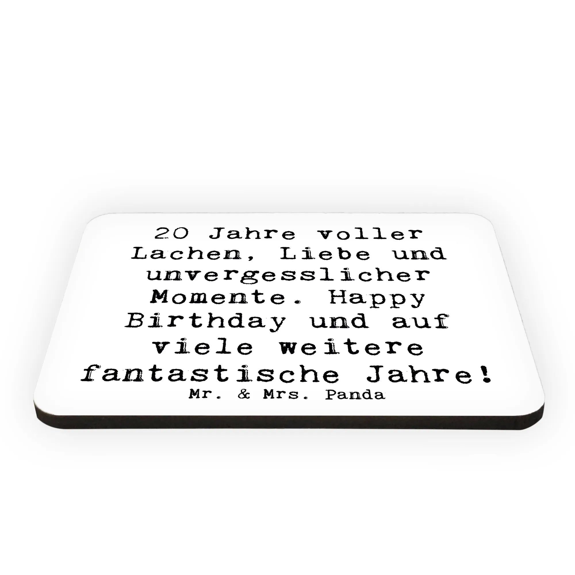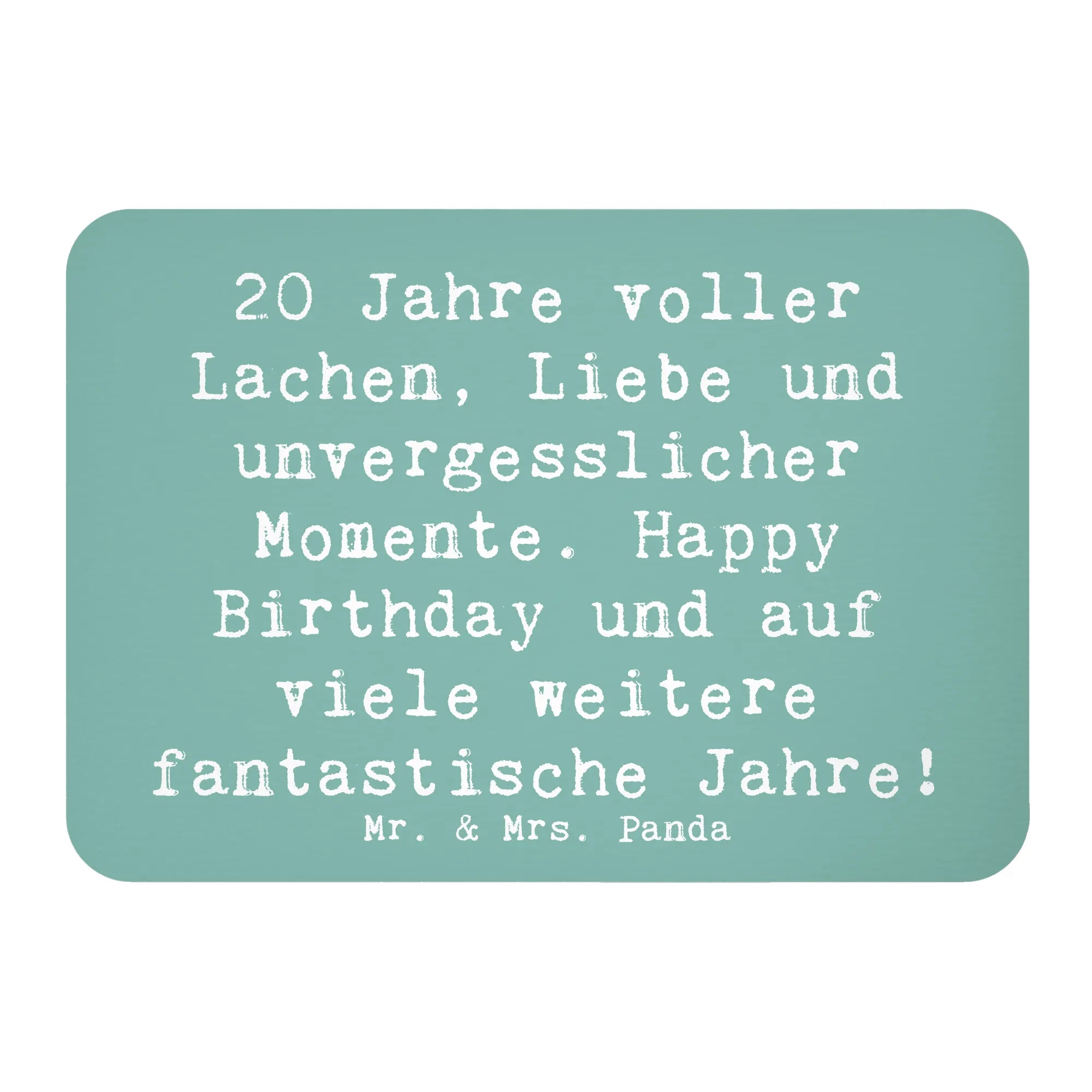 Wenn Du auf der Suche nach dem perfekten Geschenk zum 20. Geburtstag bist, dann ist der Magnet "20 Jahre voller Lachen, Liebe und unvergesslicher Momente. Happy Birthday und auf viele weitere fantastische Jahre!" von Mr. & Mrs. Panda genau das Richtige für Dich!