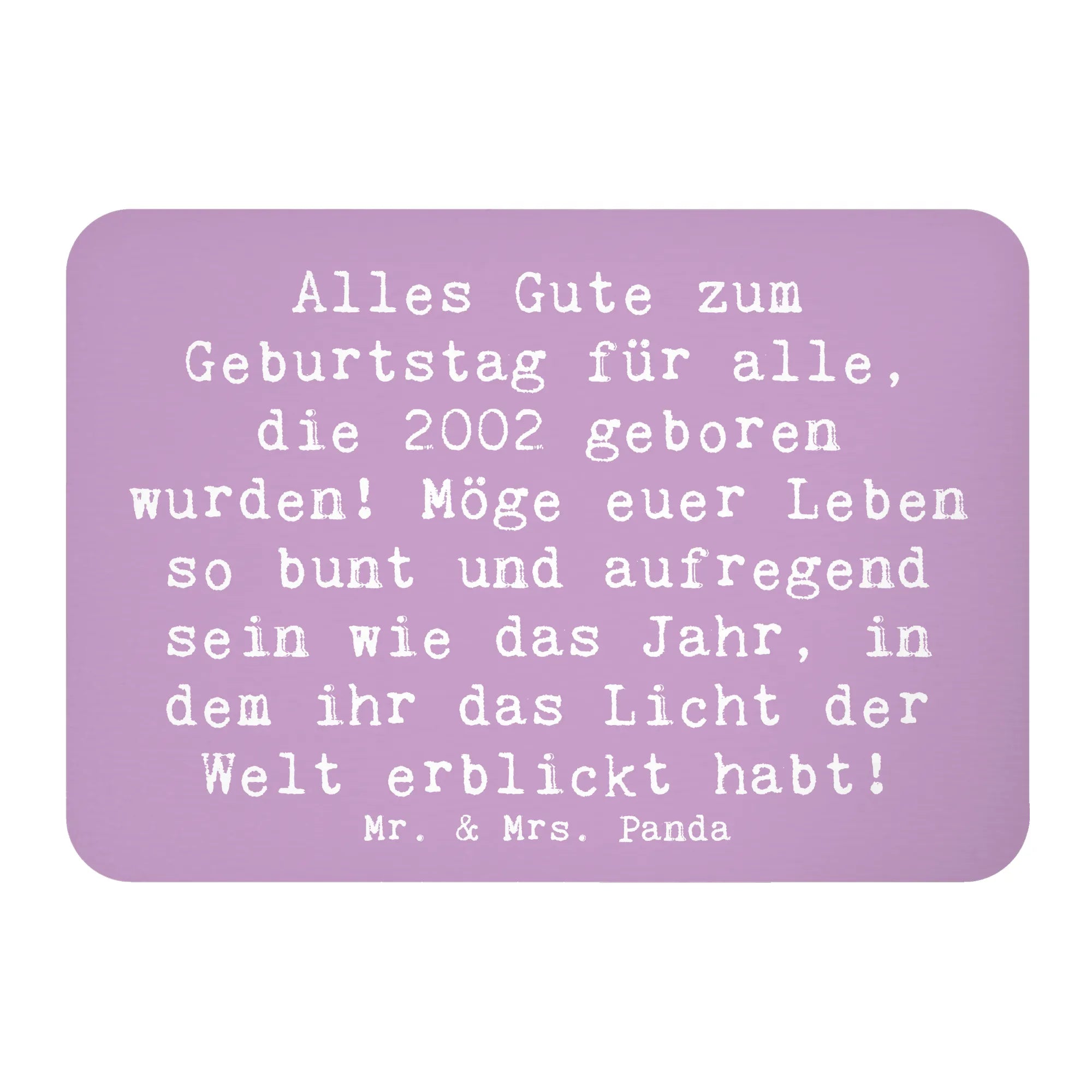 Entdecke unsere einzigartige Geburtstag Geburtsjahr-Kollektion bei Mr. & Mrs. Panda und finde das perfekte Geschenk, das eine Geschichte erzählt. Besonders für alle, die 2002 geboren wurden, ist dieser Magnet ein liebevolles, originelles Andenken und erinnert immer wieder an diesen besonderen Tag im Jahr. Lass ’Dich von der Lebensfreude inspirieren und schaffe wunderschöne Erinnerungen!