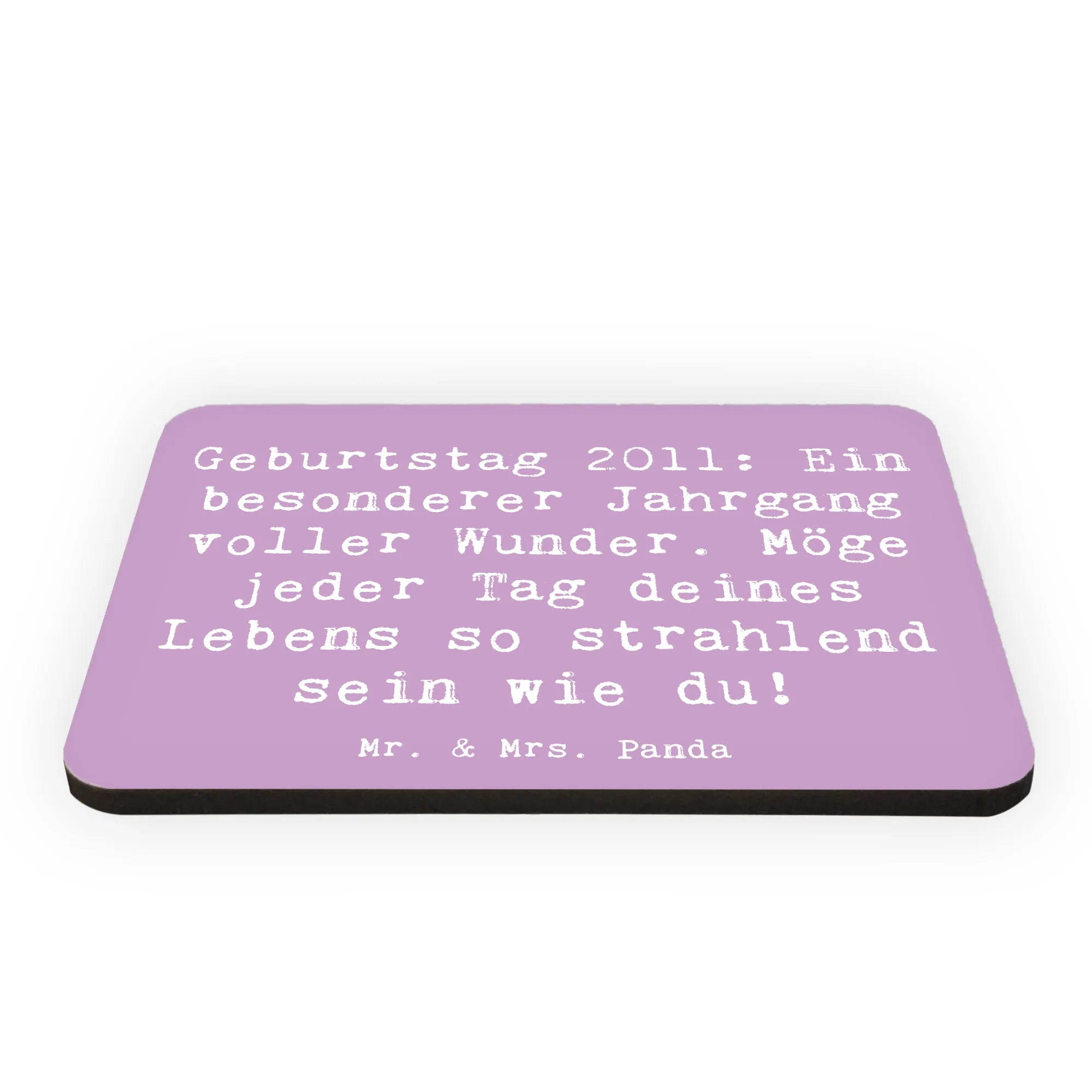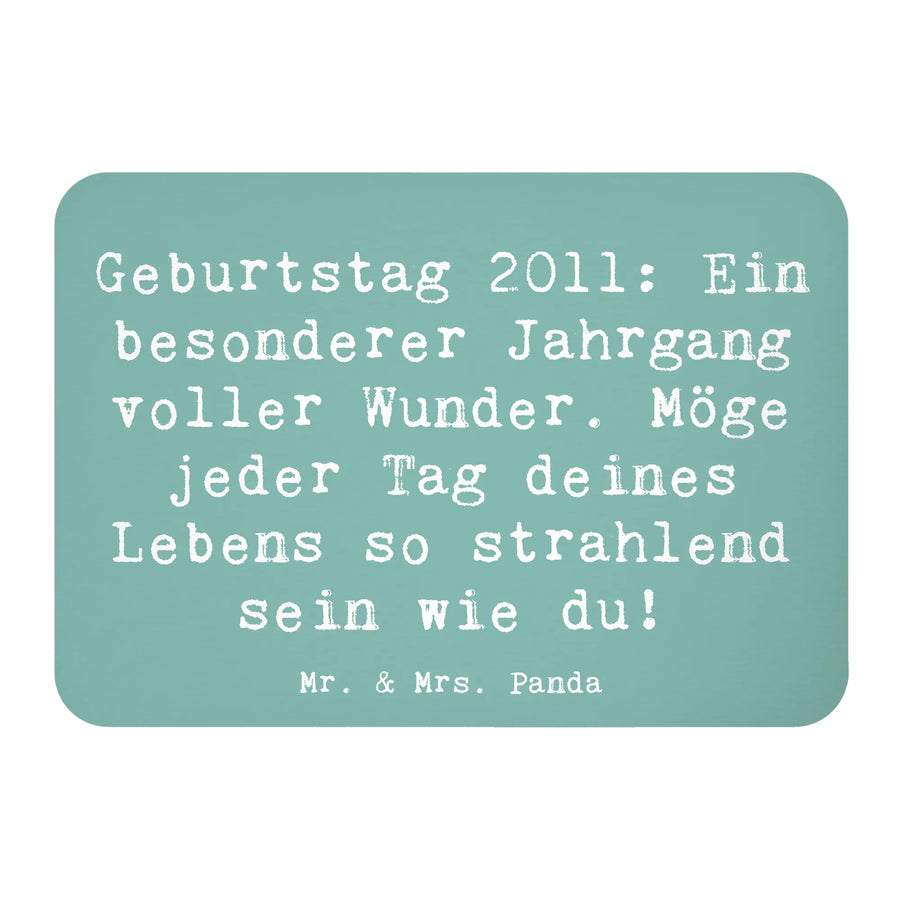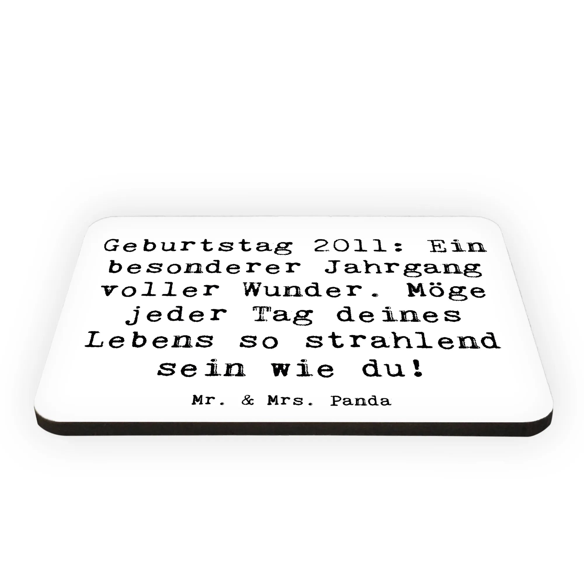 Suchst du nach einem besonderen Geschenk für einen wunderbaren Menschen, der im Jahr 2011 geboren wurde? Dann ist der Mr. & Mrs. Panda Kühlschrankmagnet mit dem Motiv "Geburtstag 2011: Ein besonderer Jahrgang voller Wunder. Möge jeder Tag deines Lebens so strahlend sein wie du!" genau das Richtige!