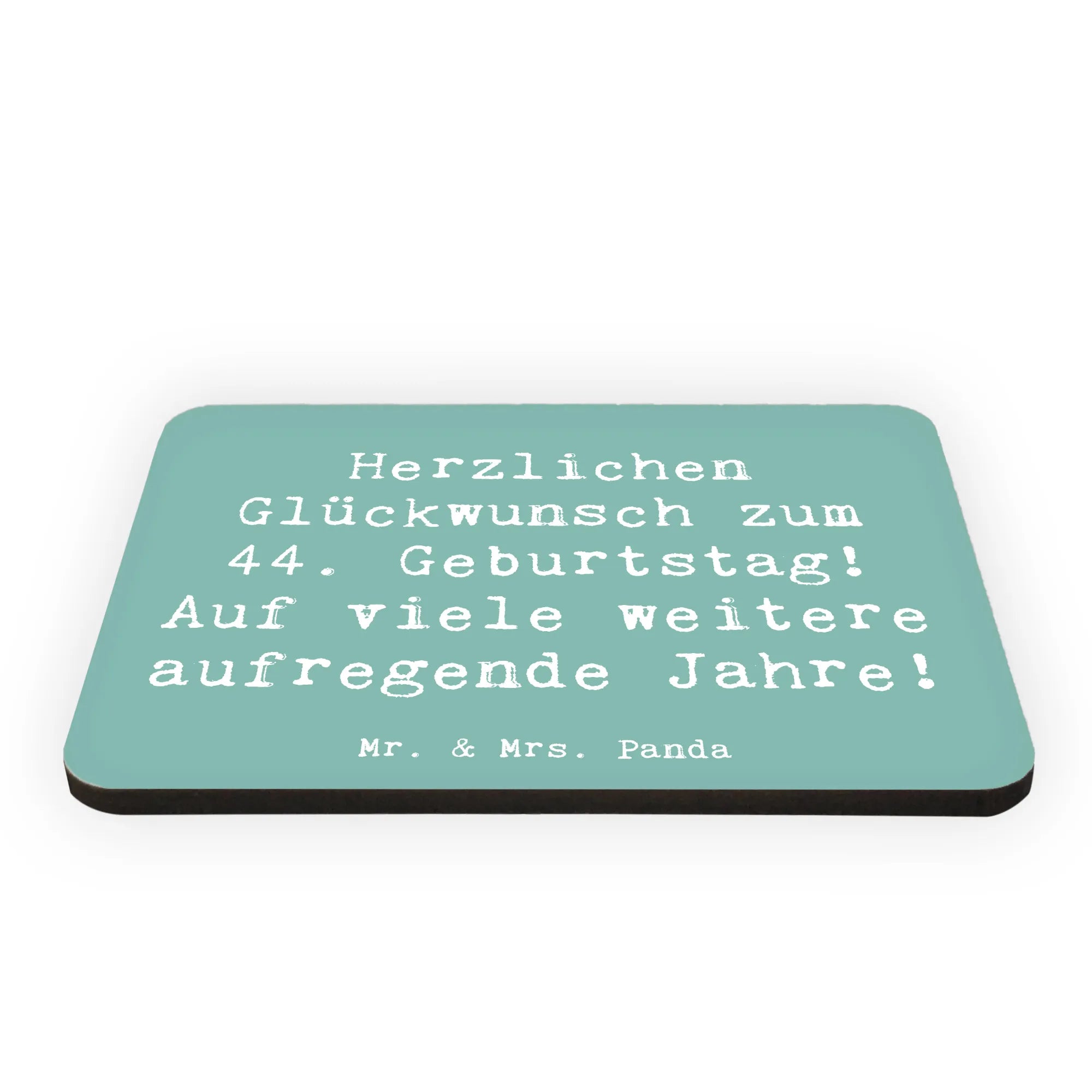Der Magnet "Herzlichen Glückwunsch zum 44. Geburtstag! Auf viele weitere aufregende Jahre!" von Mr. & Mrs. Panda ist das perfekte Geschenk für alle, die diesen besonderen Tag gebührend feiern möchten. Mit einer Größe von 52 mm x 74 mm und einem Gewicht von nur 20 g ist dieser niedliche Magnet die ideale Kühlschrankdekoration. Gefertigt aus feinem Holz, zeichnet er sich durch eine angenehme Oberfläche und ein besonders farbenfrohes Design aus.