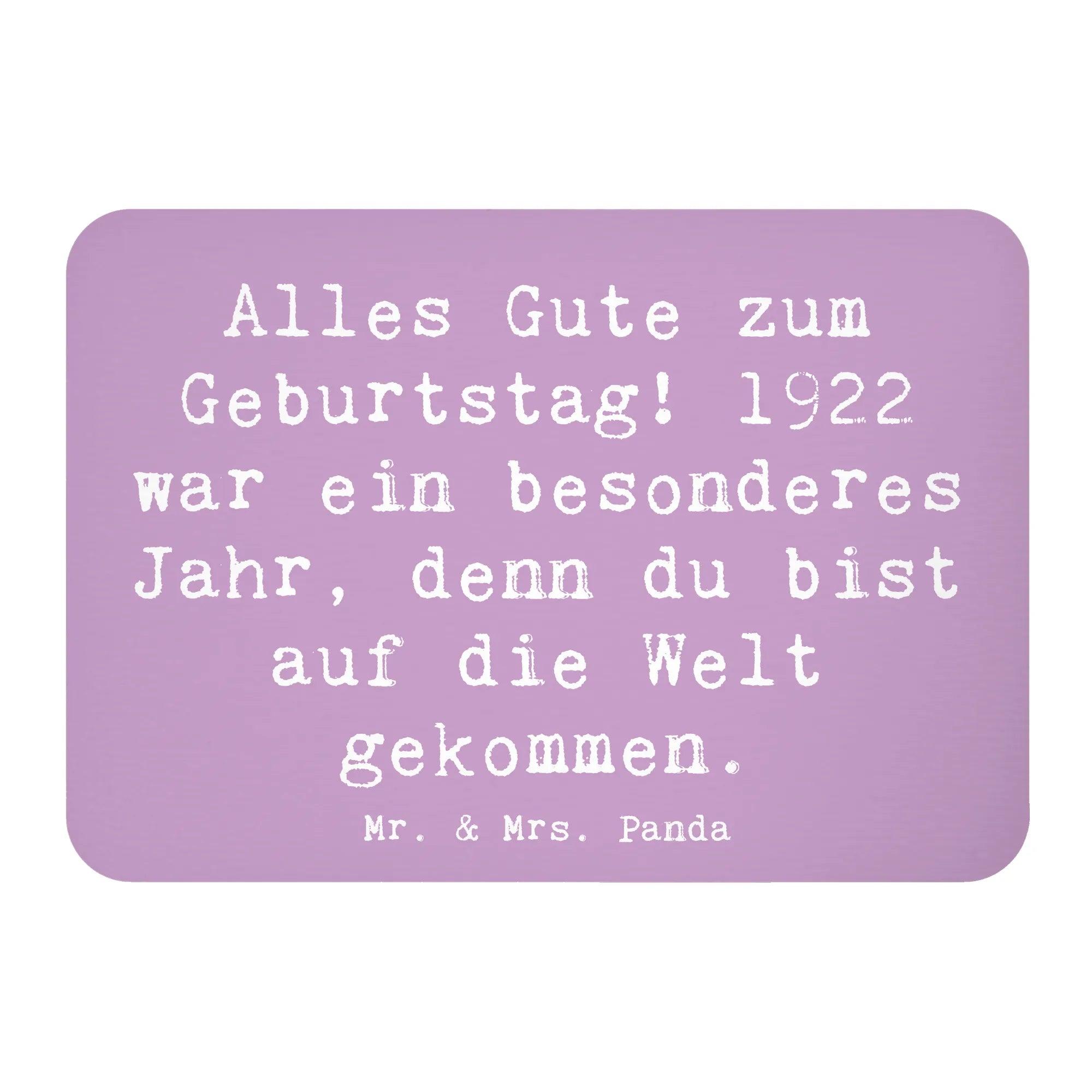 Der wunderschöne Kühlschrankmagnet "1922 Geburtstag" von Mr. & Mrs. Panda ist das perfekte Geschenk für alle, die in diesem besonderen Jahr das Licht der Welt erblickt haben. Mit einem charmanten Spruch, der sagt: "Alles Gute zum Geburtstag! 1922 war ein besonderes Jahr, denn du bist auf die Welt gekommen", wird dieser Magnet nicht nur den Kühlschrank zieren, sondern auch Herzen höher schlagen lassen.