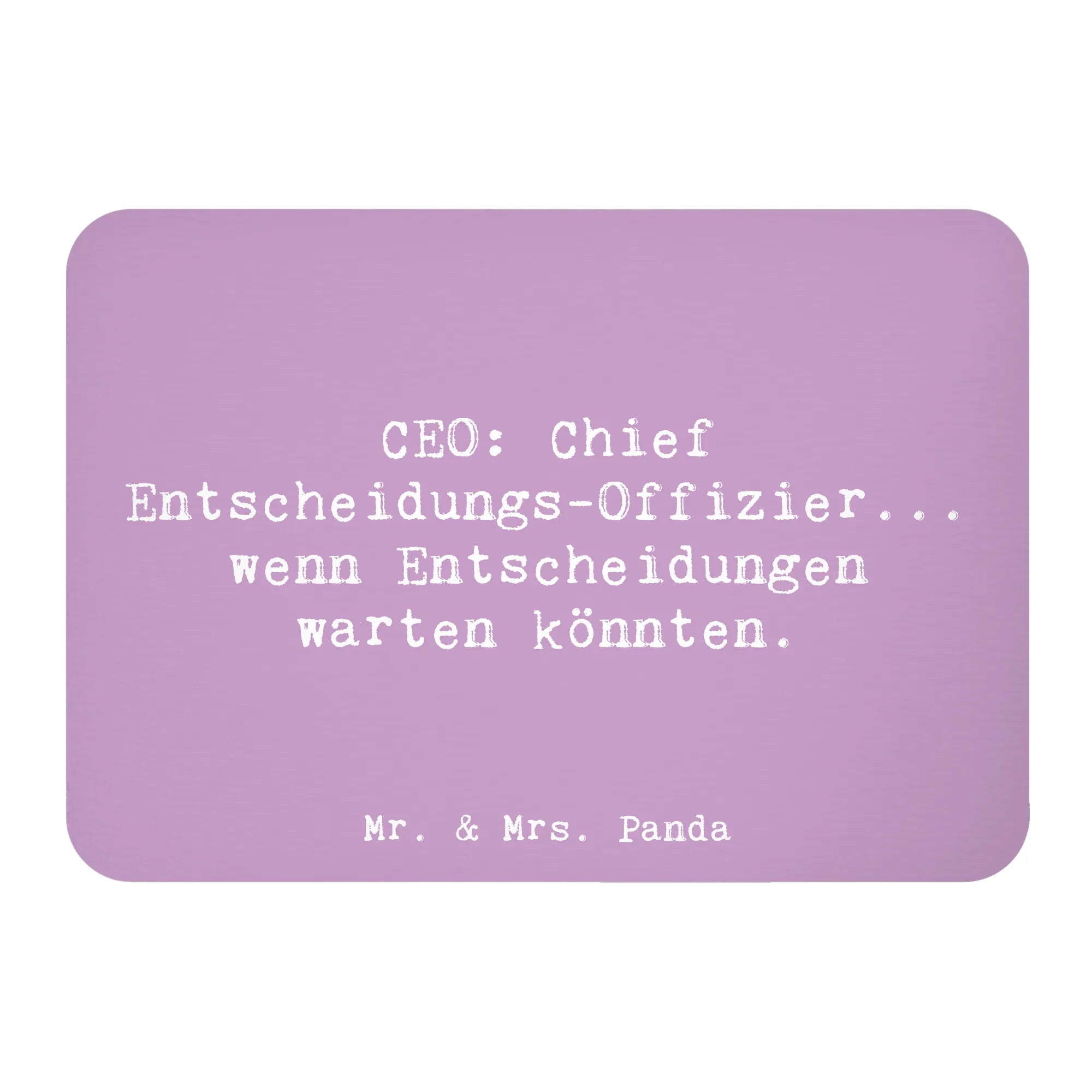 Der faszinierende Magnet "CEO: Chief Entscheidungs-Offizier... wenn Entscheidungen warten könnten" von Mr. & Mrs. Panda ist das perfekte Geschenk für alle Führungskräfte und Manager, die jeden Tag wichtige Entscheidungen treffen.