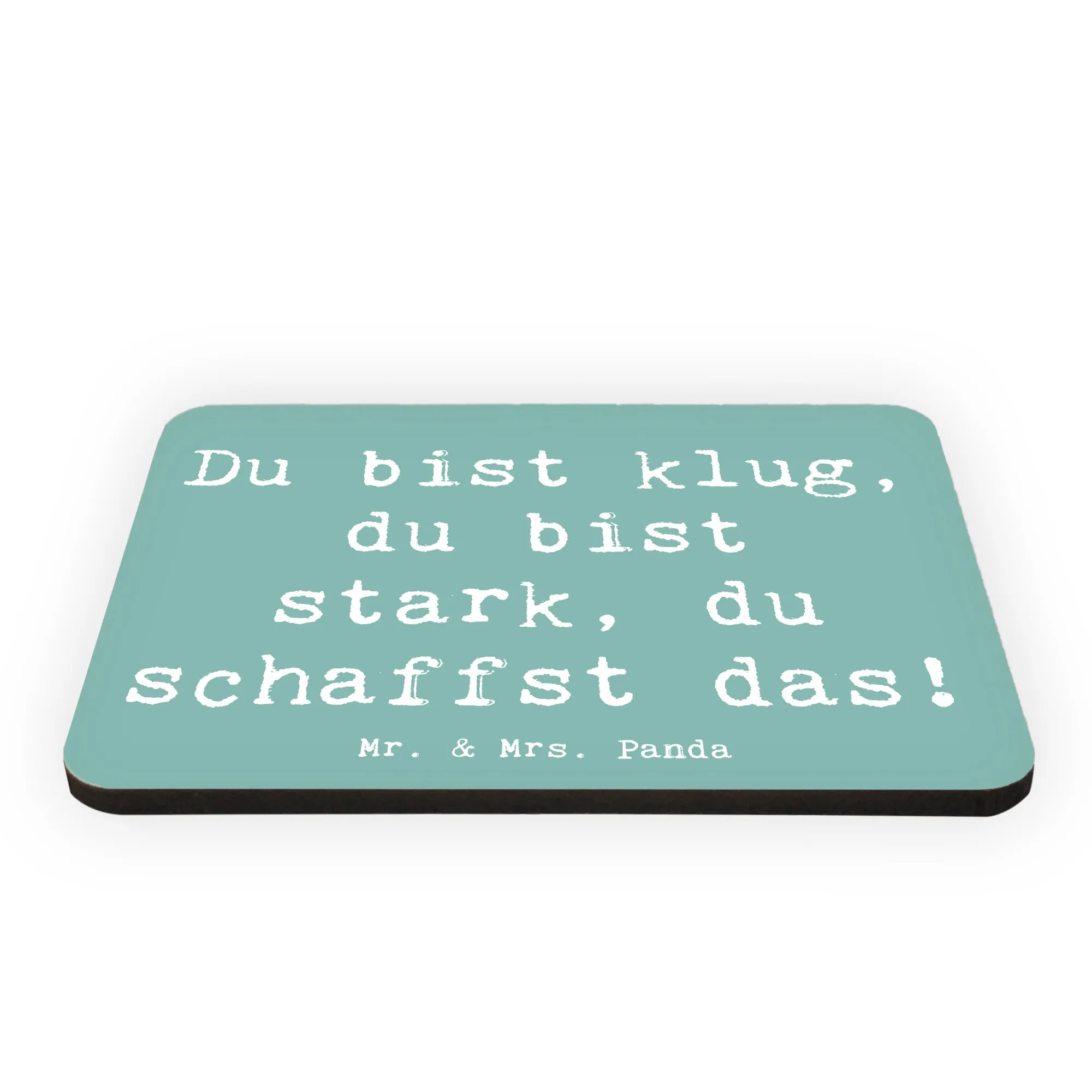 Der Kühlschrankmagnet "Erster Schultag in einer neuen Klasse" aus der Mutmacher-Kollektion von Mr. & Mrs. Panda ist das ideale Geschenk für alle kleinen Abenteurer, die ihren ersten Schultag feiern. Dieser farbenfrohe und liebevoll gestaltete Magnet, bedruckt mit dem motivierenden Slogan "Du bist klug, du bist stark, du schaffst das!", bringt nicht nur Freude, sondern auch ein Stückchen Zuversicht in den Alltag.