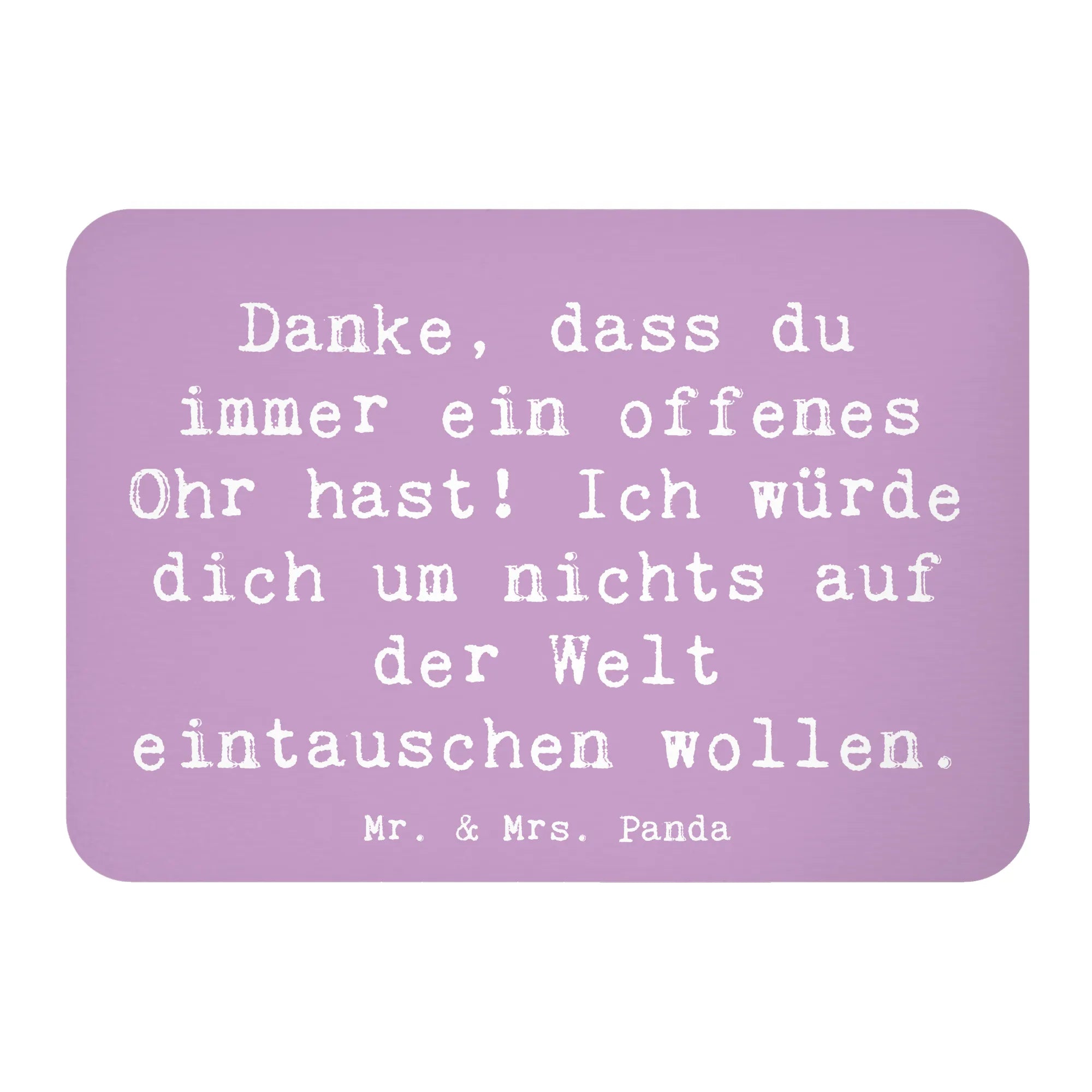 Der wunderschöne Kühlschrankmagnet von Mr. & Mrs. Panda ist das perfekte Geschenk für deinen Freund! Mit dem liebevollen Spruch "Danke, dass du immer ein offenes Ohr hast! Ich würde dich um nichts auf der Welt eintauschen wollen." vermittelt dieser Magnet deine Dankbarkeit auf eine herzliche und persönliche Weise. Egal, ob zum Geburtstag, als kleine Aufmerksamkeit zwischendurch oder einfach nur, um jemandem zu zeigen, wie wichtig er dir ist – dieser Magnet wird garantiert ein Lächeln auf sein Gesicht zaubern.