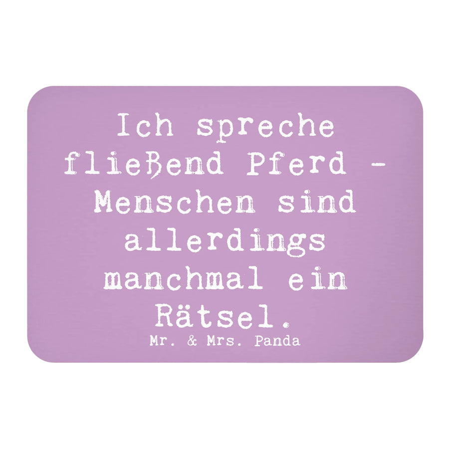 Das liebevoll gestaltete Motiv zeigt einen Spruch, der jedem Pferdefan aus der Seele spricht: "Ich spreche fließend Pferd - Menschen sind allerdings manchmal ein Rätsel." Ein idealer Spruch, um sowohl die leidenschaftlichen Reiter als auch die, die es werden wollen, zum Schmunzeln zu bringen.