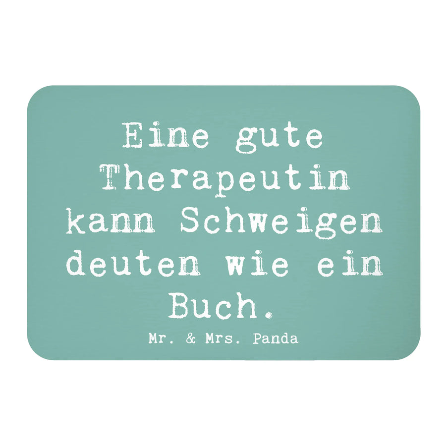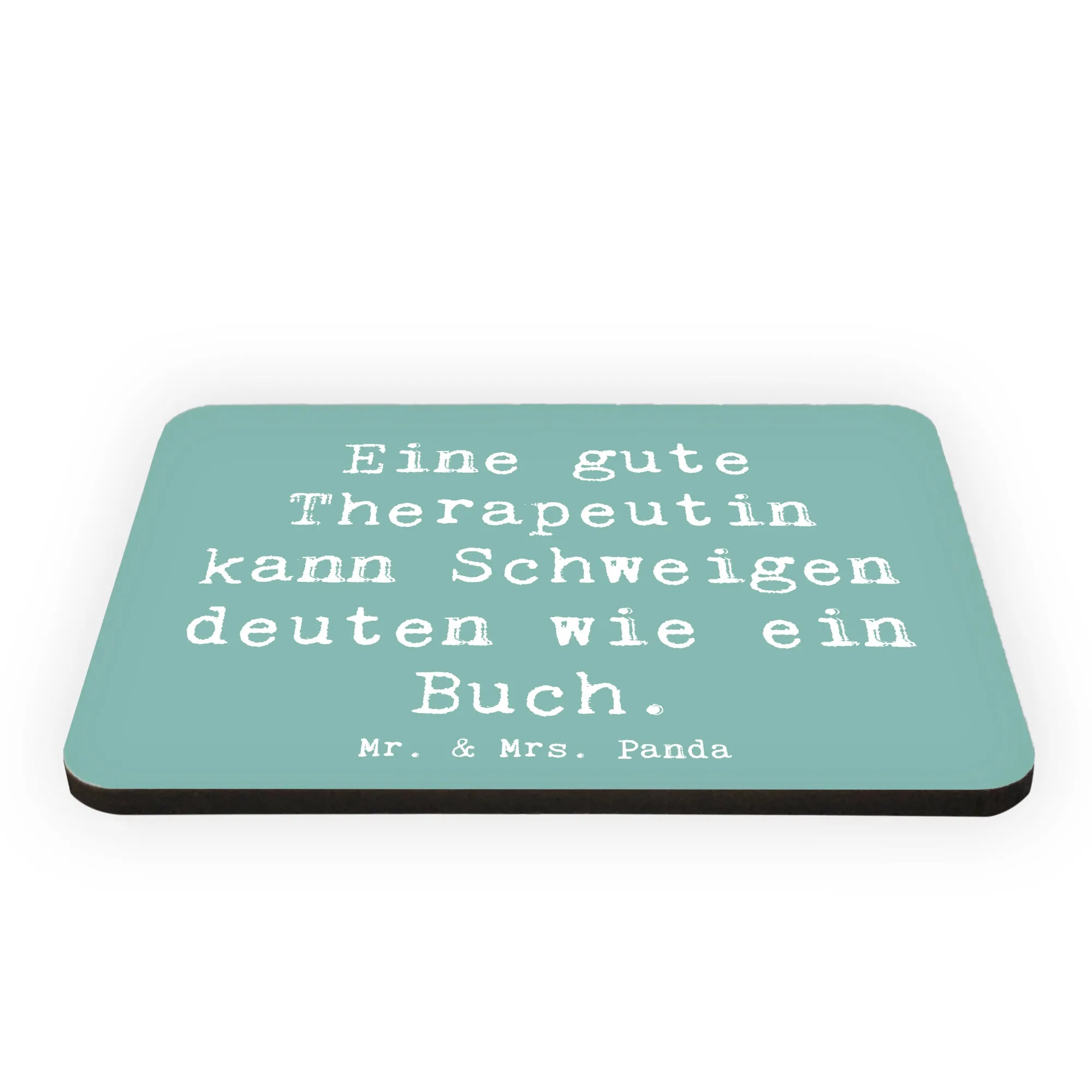 Du suchst nach einem liebevollen Geschenk für deine Lieblings-Therapeutin? Dann ist der Kühlschrankmagnet mit dem Spruch "Eine gute Therapeutin kann Schweigen deuten wie ein Buch" aus der Berufe-Kollektion von Mr. & Mrs. Panda genau das Richtige für dich!