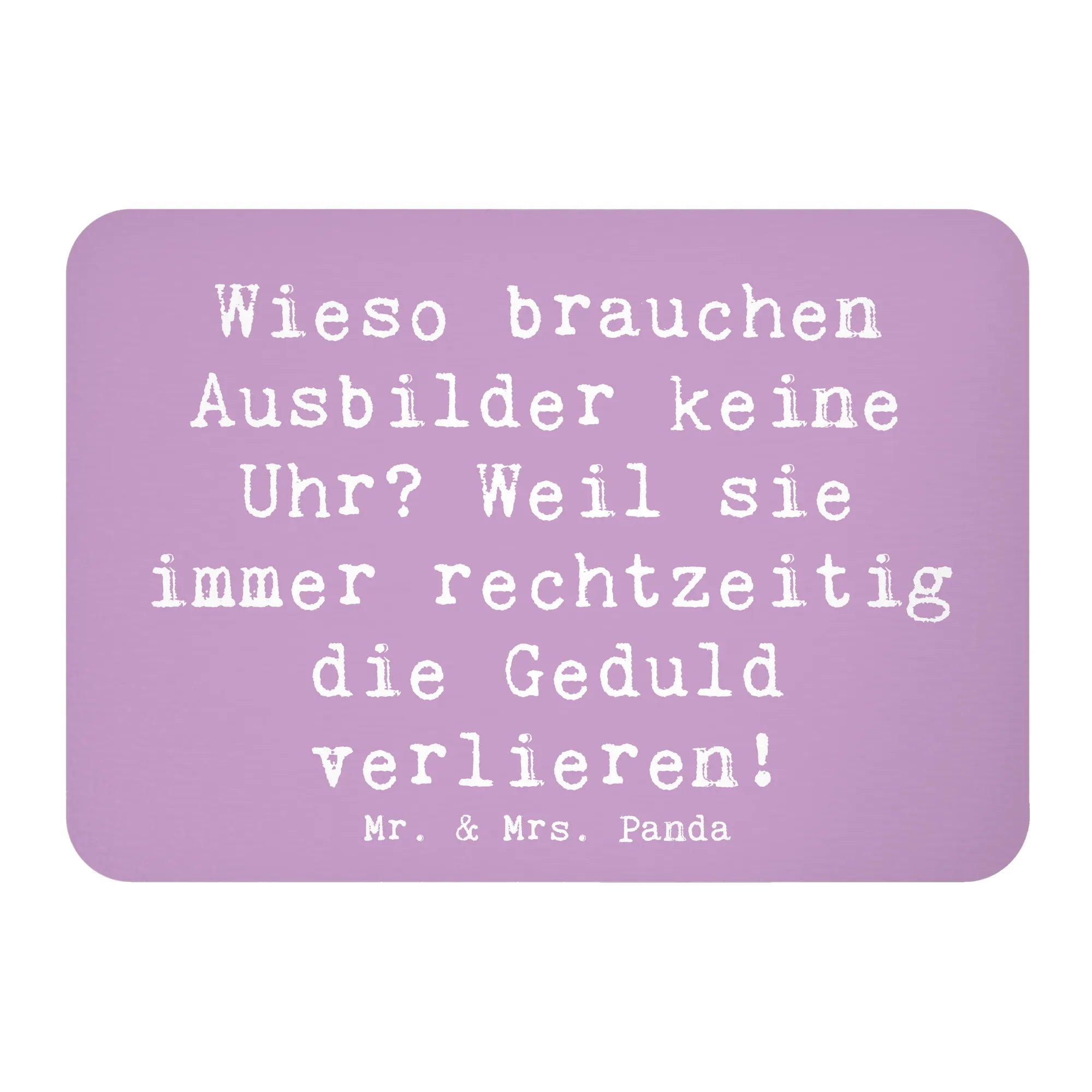 Wenn du auf der Suche nach einem Geschenk für Ausbilder bist, dann ist dieser Kühlschrankmagnet von Mr. & Mrs. Panda genau das Richtige! Mit dem charmanten Spruch "Wieso brauchen Ausbilder keine Uhr? Weil sie immer rechtzeitig die Geduld verlieren!" bringt dieser Magnet nicht nur ein Lächeln in den Alltag, sondern ist auch ein praktisches Accessoire.