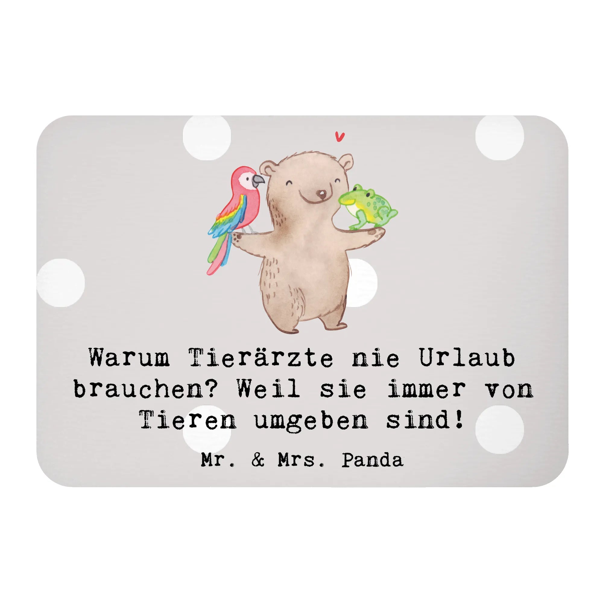 Entdecke den bezaubernden Kühlschrankmagneten mit dem süßen Motiv "Tierarzt" aus der liebevollen Berufe-Kollektion von Mr. & Mrs. Panda! Dieser praktische Magnet mit dem humorvollen Slogan "Warum Tierärzte nie Urlaub brauchen? Weil sie immer von Tieren umgeben sind!" ist nicht nur ein toller Blickfang, sondern auch eine wunderbare Möglichkeit, deinen Alltag ein wenig bunter zu gestalten.