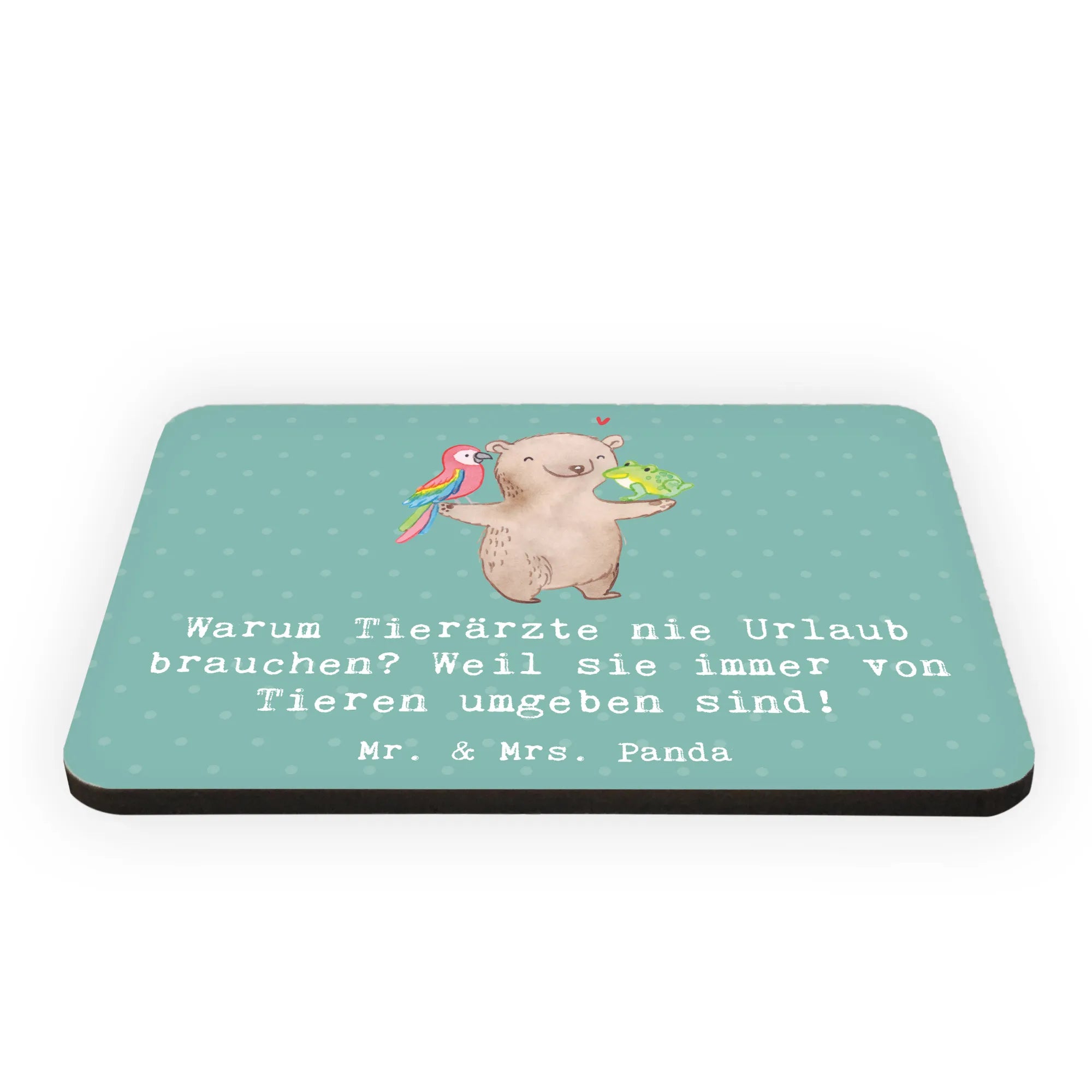 Der Kühlschrankmagnet mit dem tierärztlichen Motiv von Mr. & Mrs. Panda ist das perfekte Geschenk für alle, die sich in ihrem Beruf verwirklichen und täglich mit Tieren arbeiten. Mit dem cleveren Spruch "Warum Tierärzte nie Urlaub brauchen? Weil sie immer von Tieren umgeben sind!" bringt dieser Magnet nicht nur ein Lächeln in das Herz des beschenkten Tierarztes, sondern ist auch ein praktisches Accessoire für das Zuhause oder das Büro.