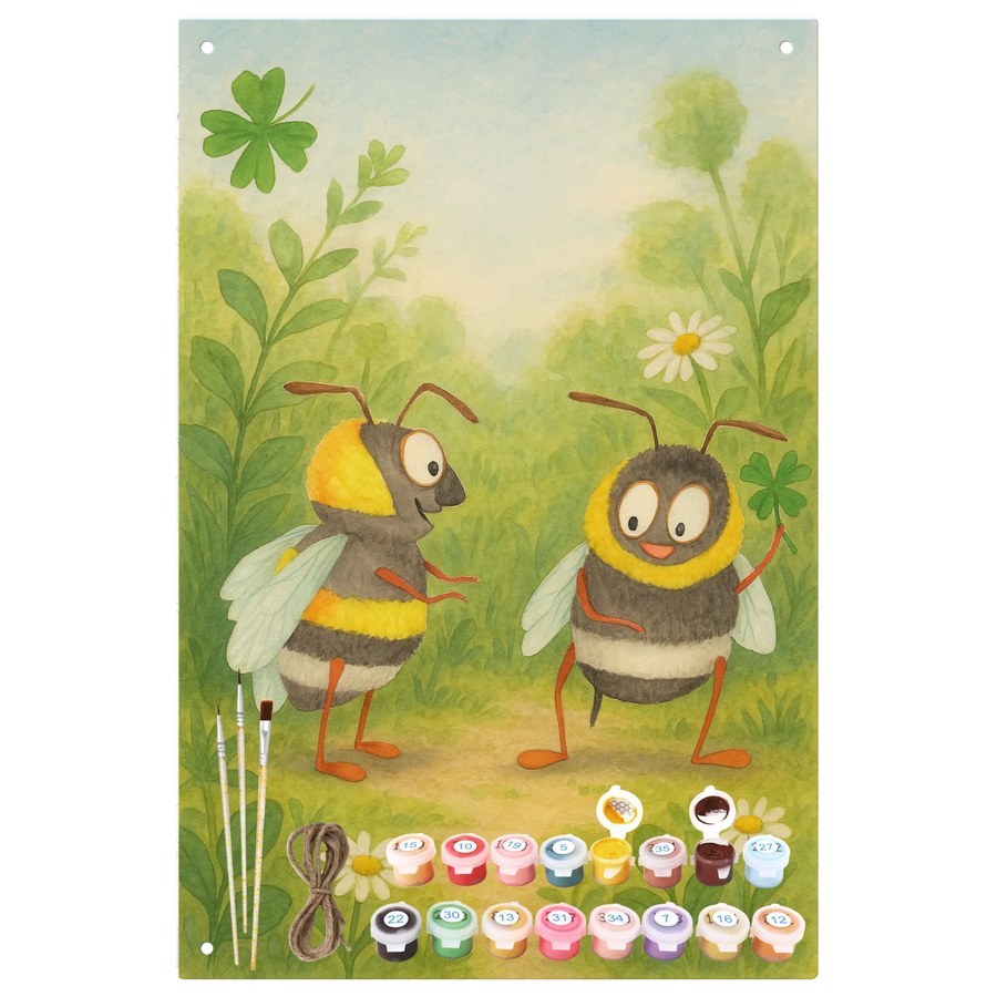 Malen nach Zahlen Metallschild Bienen Paar Design