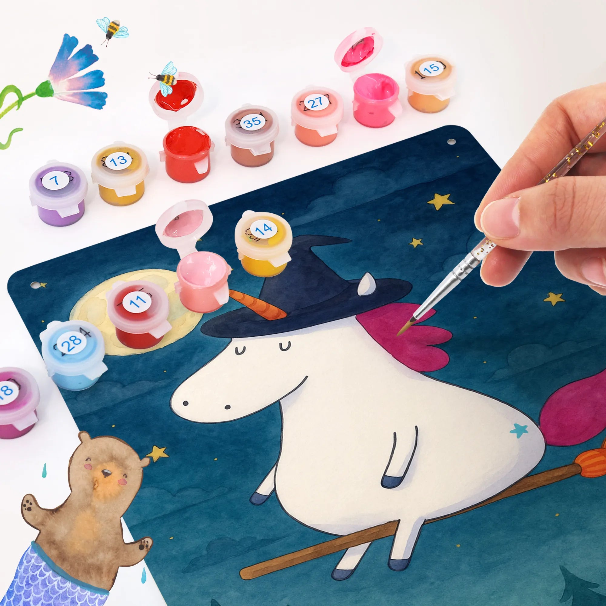 Malen nach Zahlen Metallschild Einhorn Hexe Design