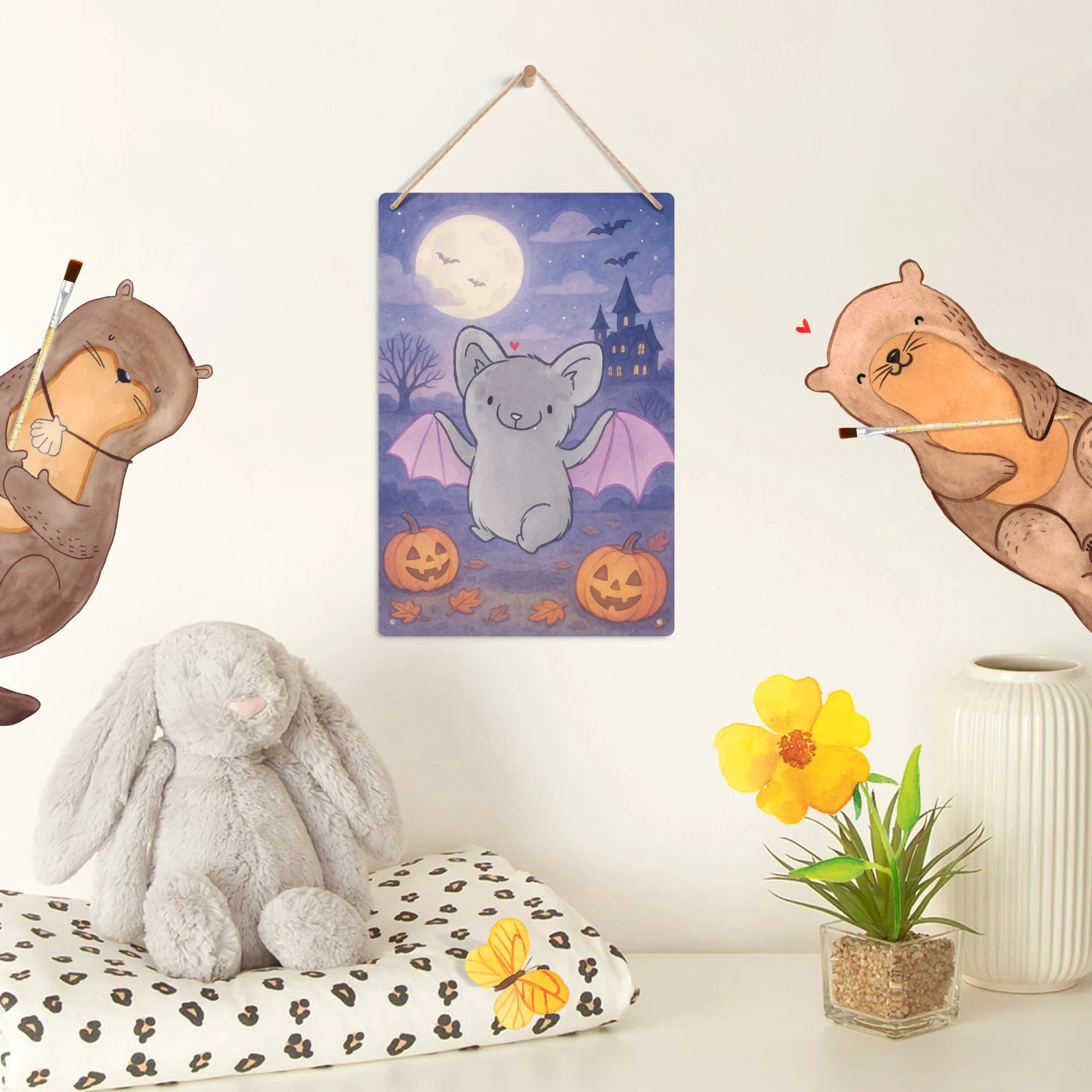 Für Liebhaber von Aquarellkunst und zarten Kunstdrucken ist dieses Motiv ein kleines Juwel: Die Fledermaus wurde in feinen, aquarellierten Farbschichten gearbeitet, ihr graues Fell zeigt subtile Nuancen, und die rosa Flügel setzen einen liebevollen, modernen Akzent. Das Ergebnis wirkt wie ein handgemachter Kunstdruck, der gleichzeitig verspielt und hochwertig erscheint. Mr. & Mrs. Panda legen Wert auf Qualität und Herz — genau das spürst du in der Struktur und der sorgsamen Farbführung dieses Bildes.