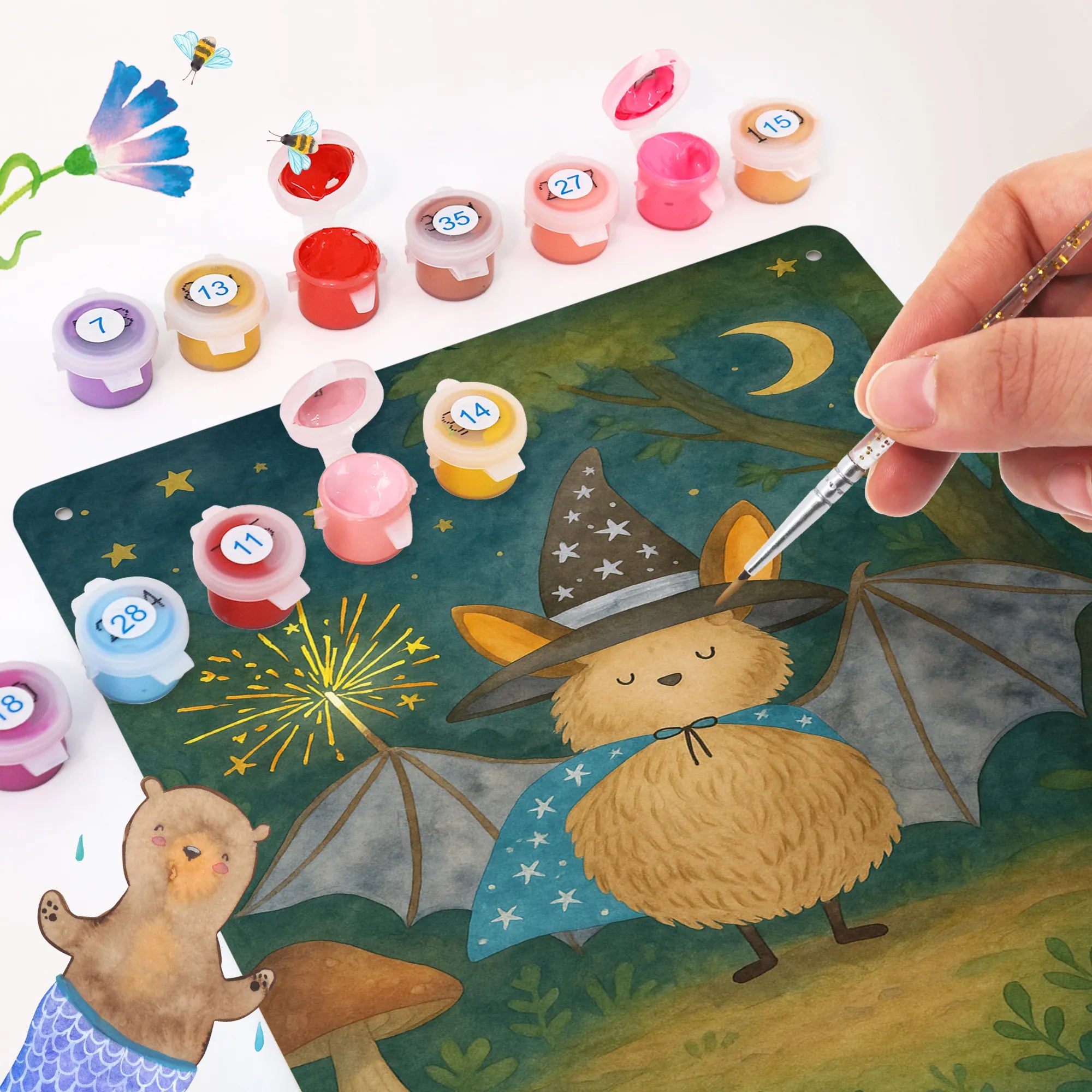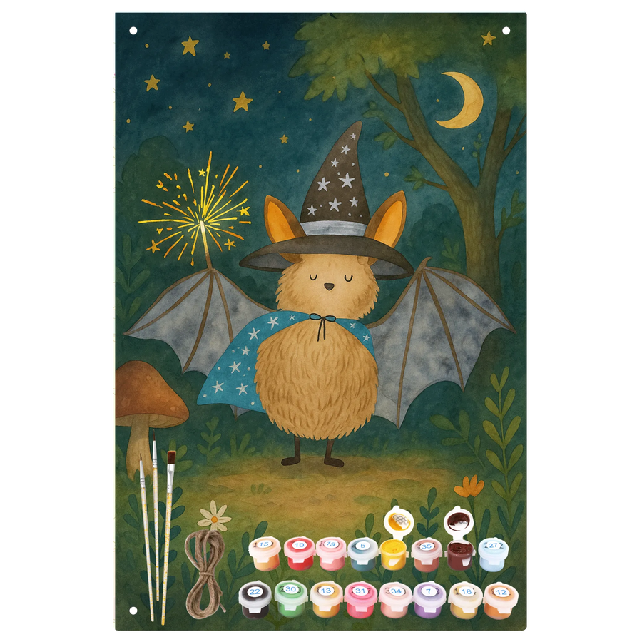 Malen nach Zahlen Metallschild Fledermaus Zauberer Design