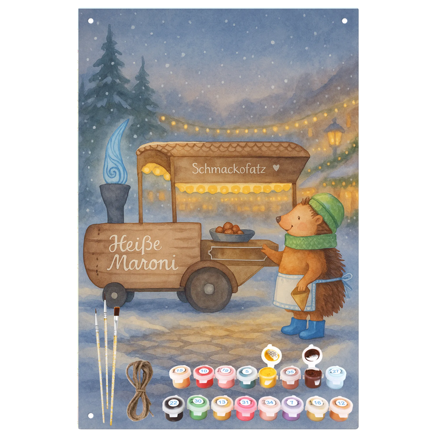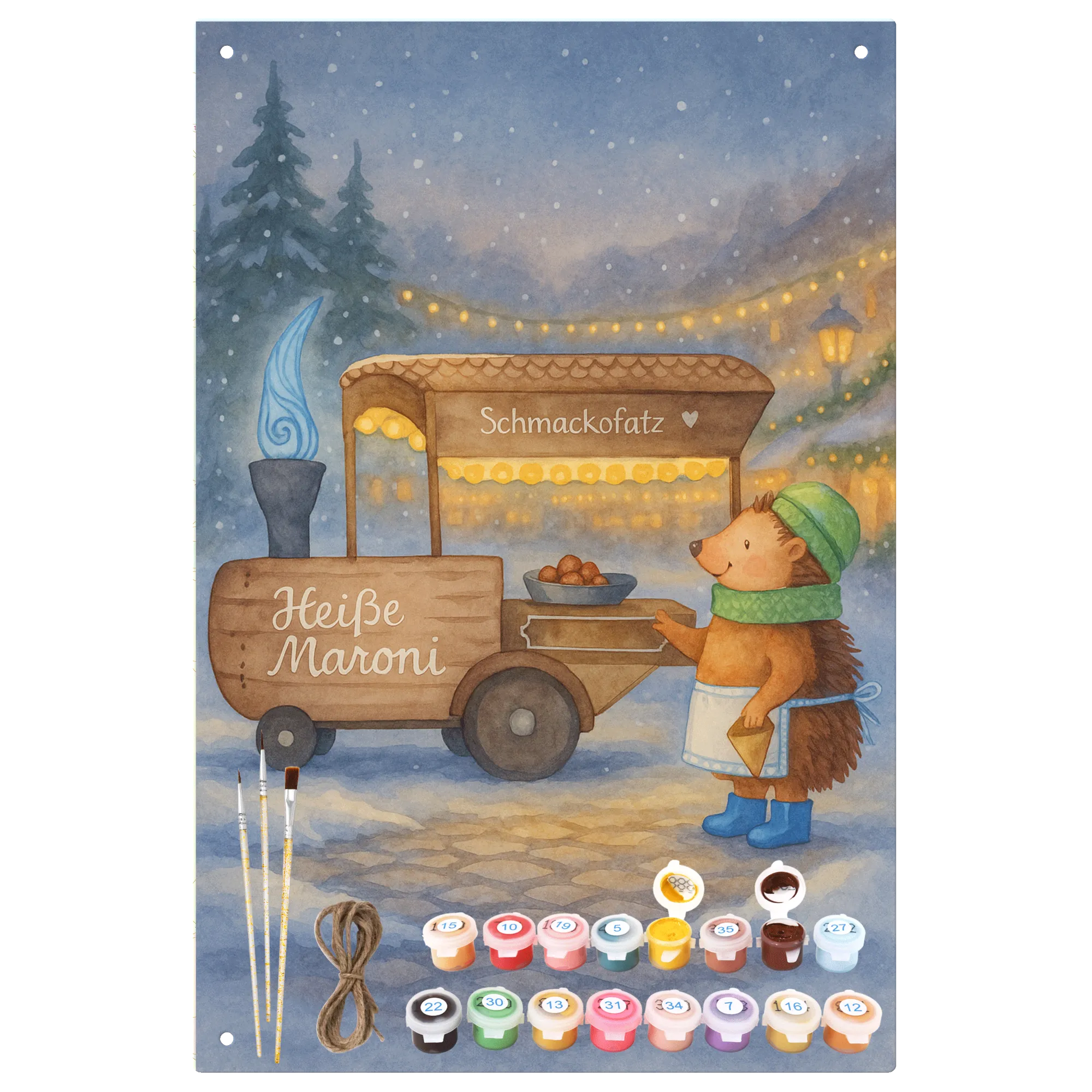 Malen nach Zahlen Metallschild Igel Maronen Design